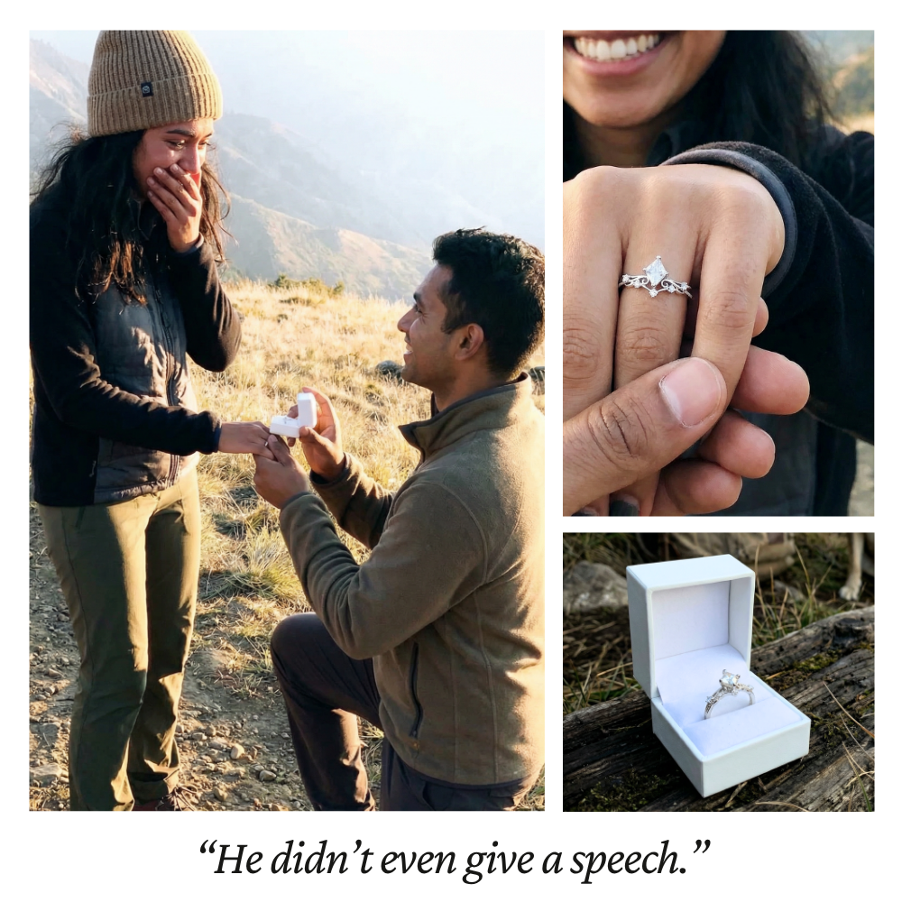 “We were halfway through the hike and I thought he was just tired. When we got to the top, he held my hand and said, ‘I don’t want to do life without you.’ That was it. That’s when I knew.” — B & LThe Ring He Chose
