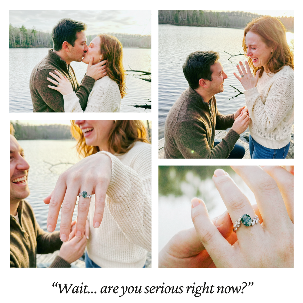 “We were literally arguing about something stupid right before. Then he pulled out the ring and I started laughing because I was nervous. But when I saw it… we’ve always talked about a forest wedding, and it felt exactly like us. He really listened.” — WendyView This Design