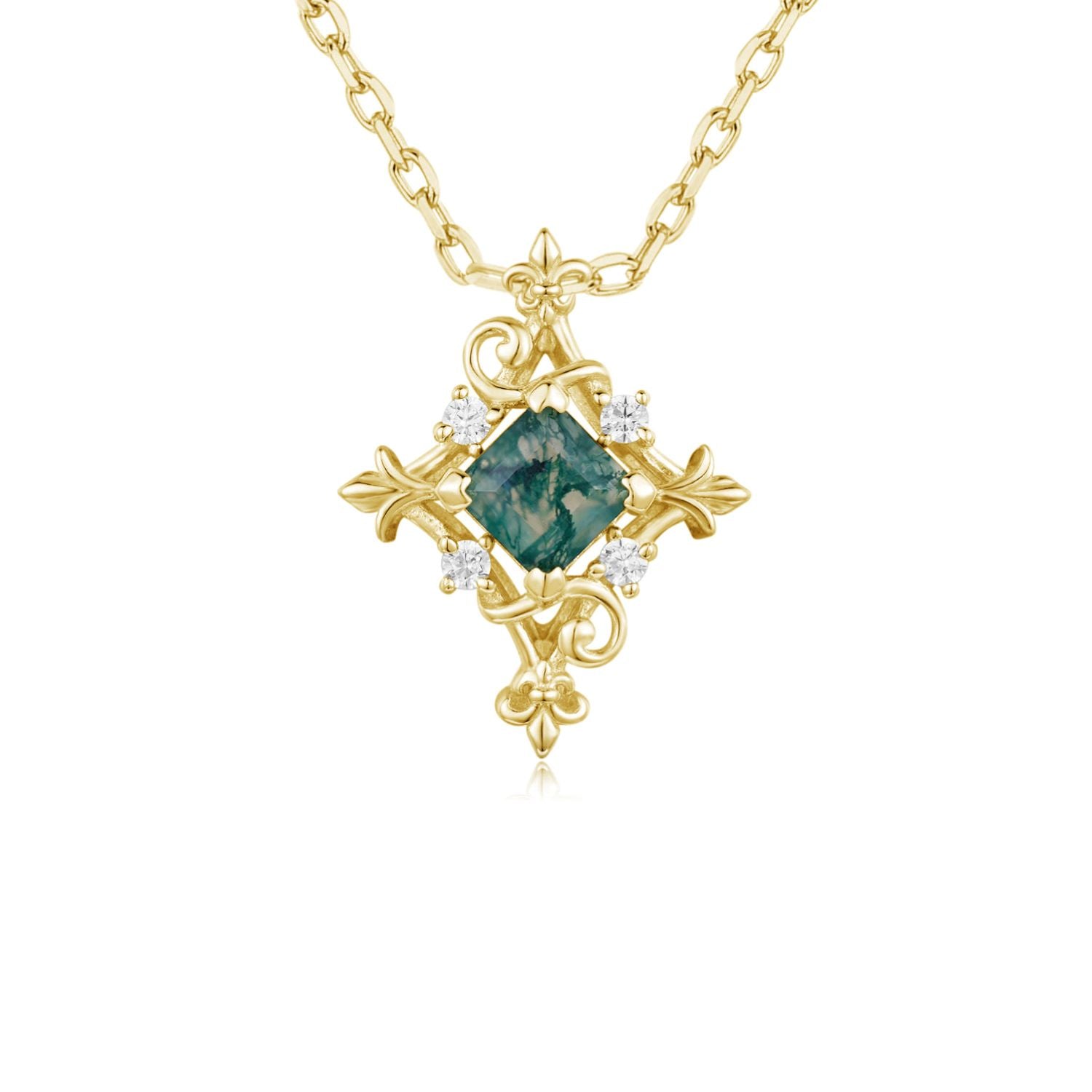 Elven Entwine Moss Agate Necklace (Yellow Gold)
