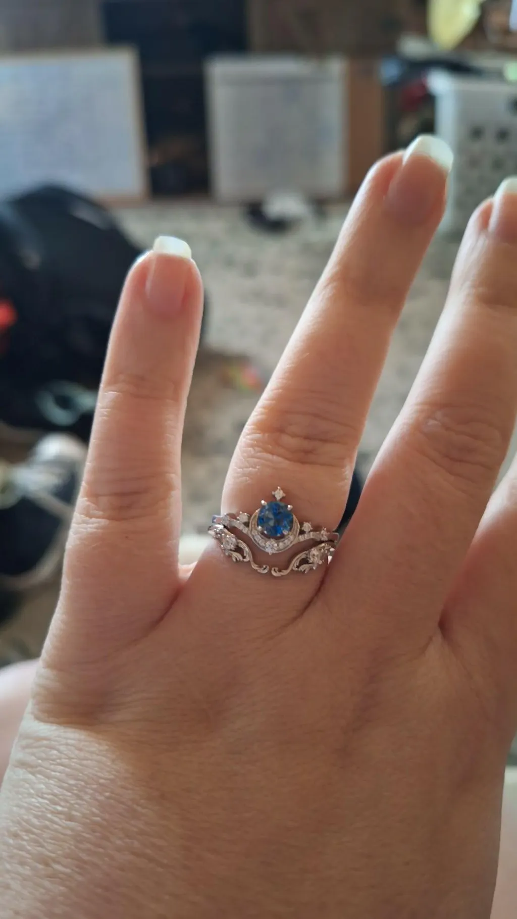 I ordered this ring for my wedding next year and I am beyond happy with it!!! Fits perfectly, absolutely stunning, and exactly what I wanted in my "forever" ring. I wanted something with a crescent moon and looked at so many different ones. When I came across this one, I knew it was my ring. Had the crescent moon, a blue stone (blue is my favorite color), AND it's not a diamond. Love love love!