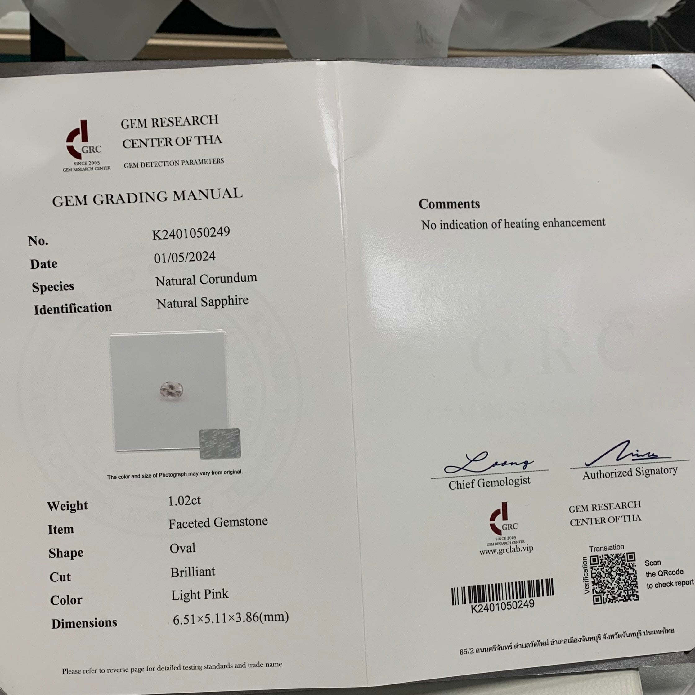 1.02 CT Natural Light Pink Sapphire: Oval #LPS-02