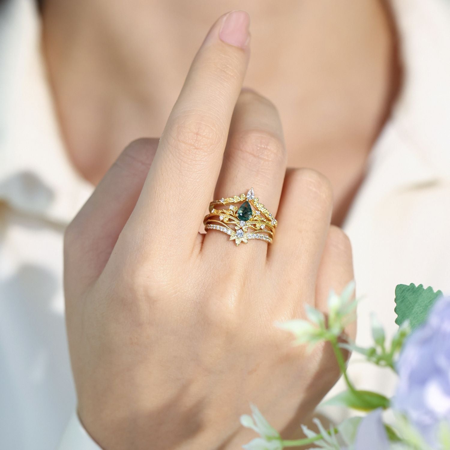 Evoking the mystique of an ancient forest in bloom, this botanical band is perfect for stacking with engagement rings, wearing solo, or gifting as a meaningful token of transformation and growth. Its design resonates with fairycore, cottagecore, and mythical jewelry aesthetics, making it a timeless choice for lovers of nature and fantasy.