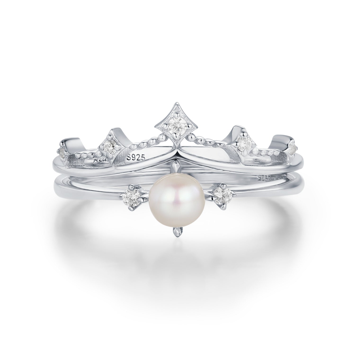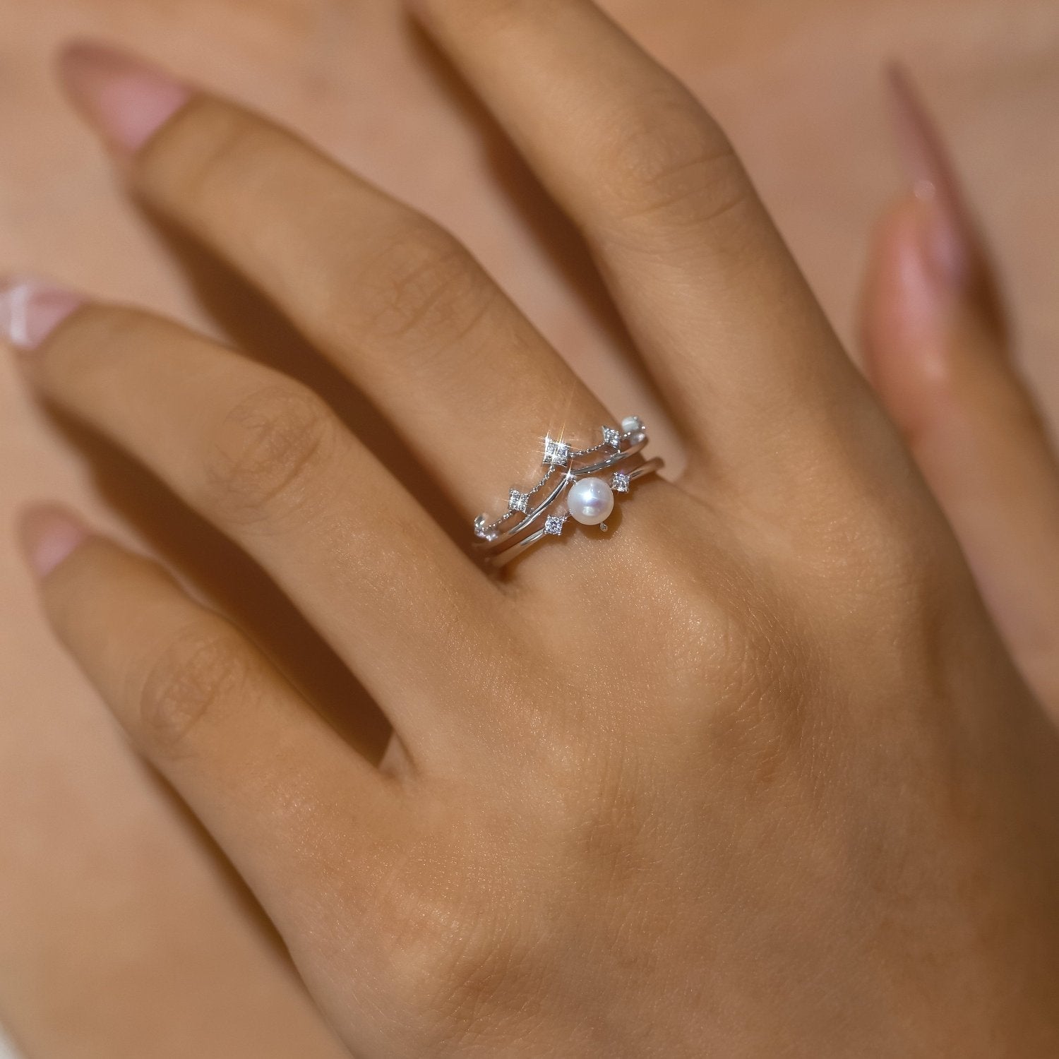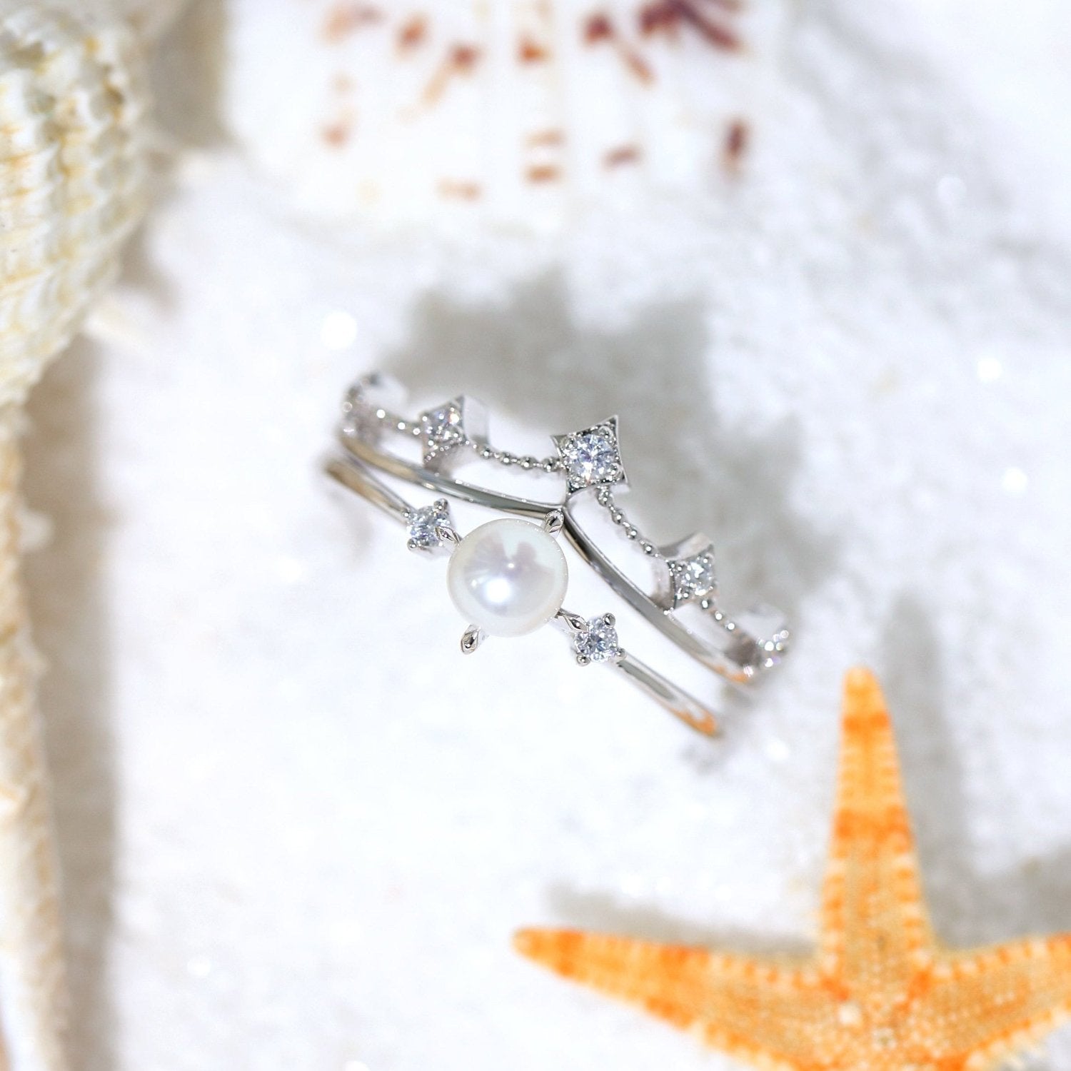 This pearl ring set evokes the mystery of moonlit tides and the shimmer of stardust. Whether you're drawn to the ocean or guided by the stars, this ring set captures both realms in perfect harmony.