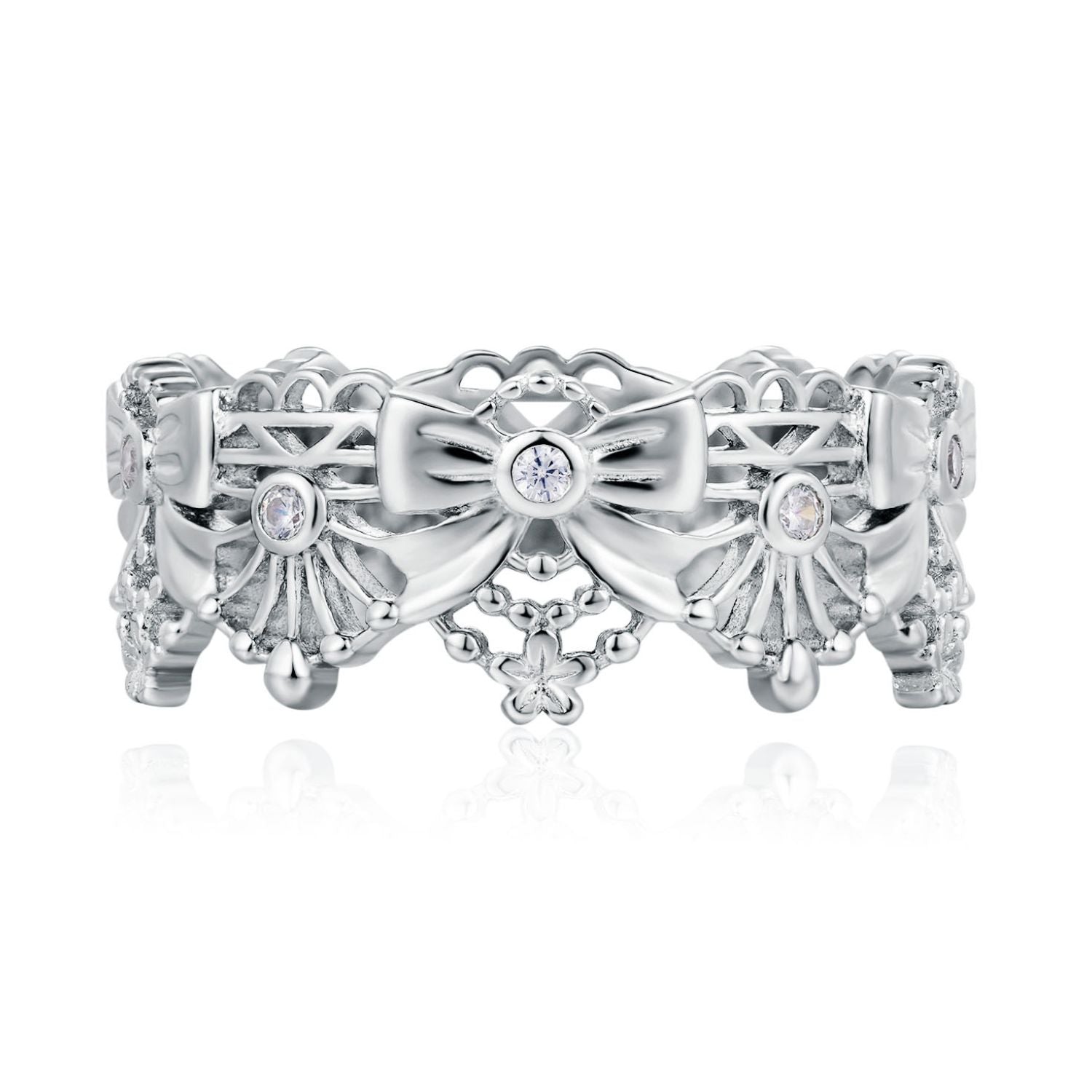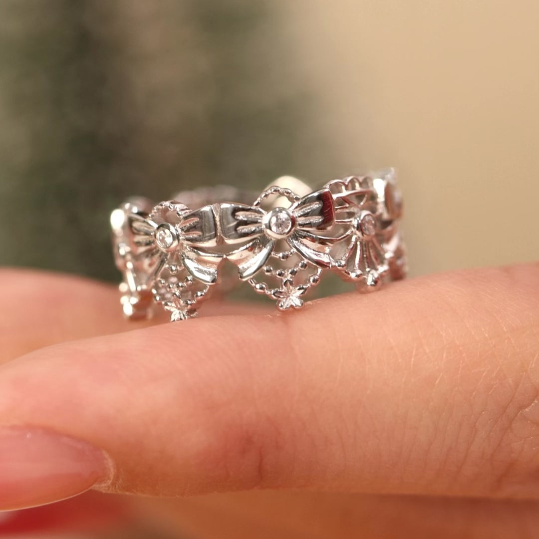 Discover the Aurora Bow Ring, a breathtaking lace-inspired eternity band that celebrates the timeless elegance of the bow.