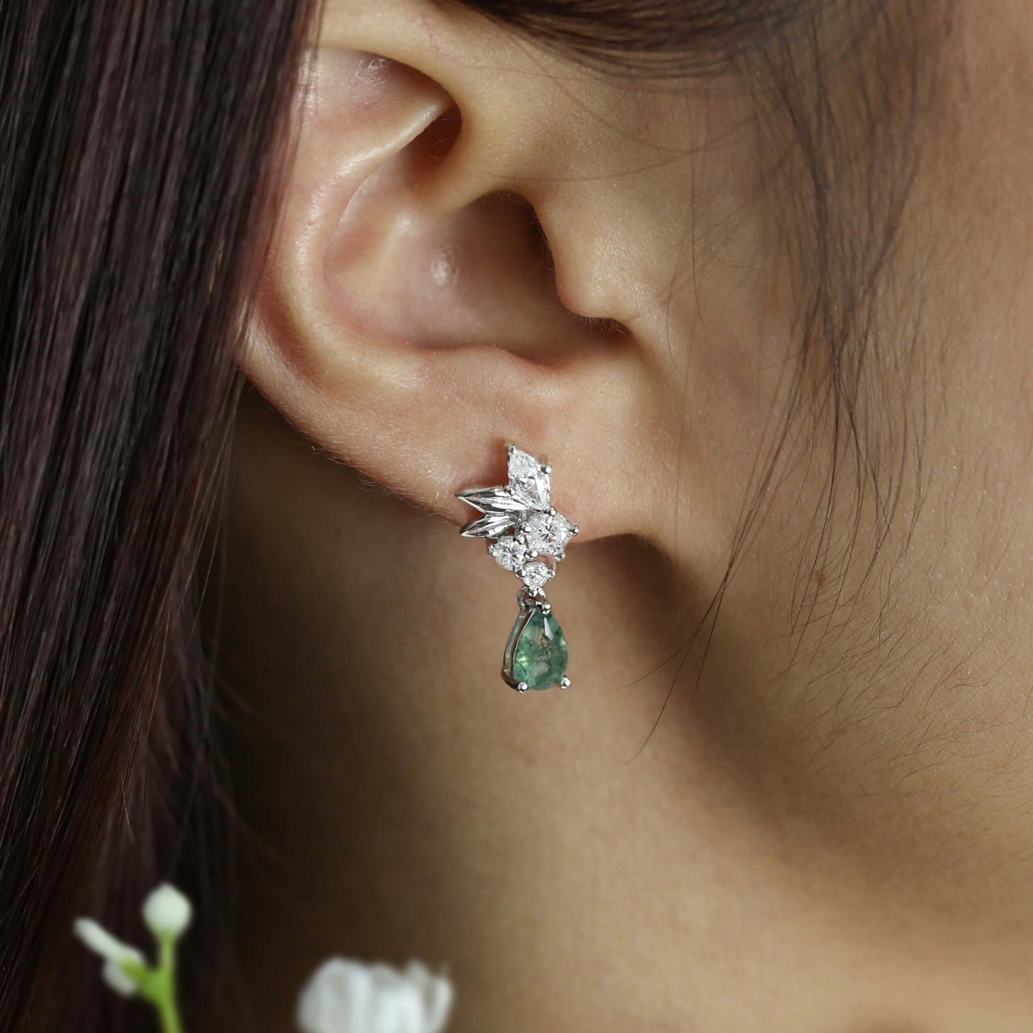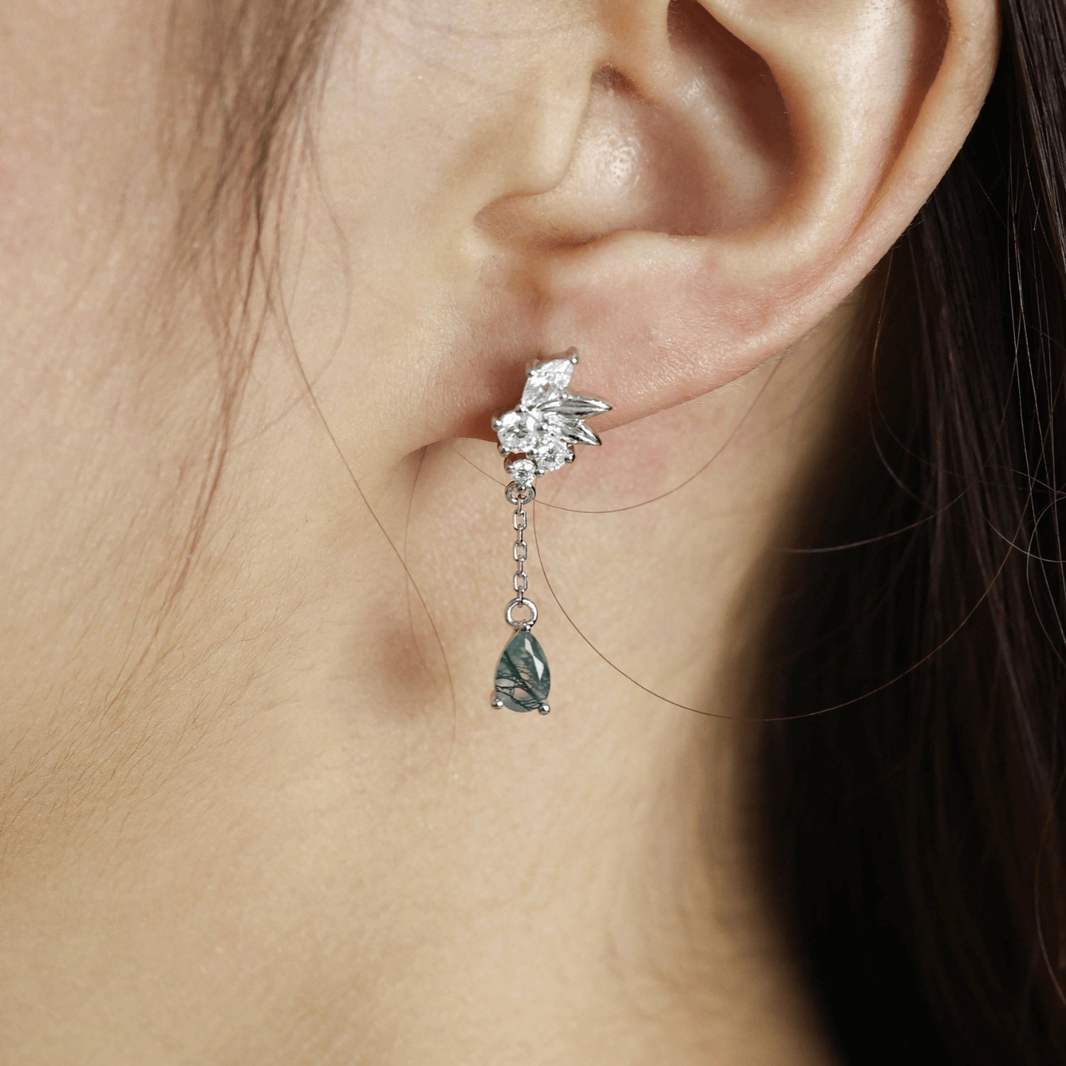 Inspired by the quiet magic of ancient woods, the Blair Green Earrings capture a moment of nature's most sacred beauty. At the heart of each earring lies a moss agate stone—resembling a teardrop from the forest itself—mysterious and deep, like a forgotten glade bathed in morning mist.