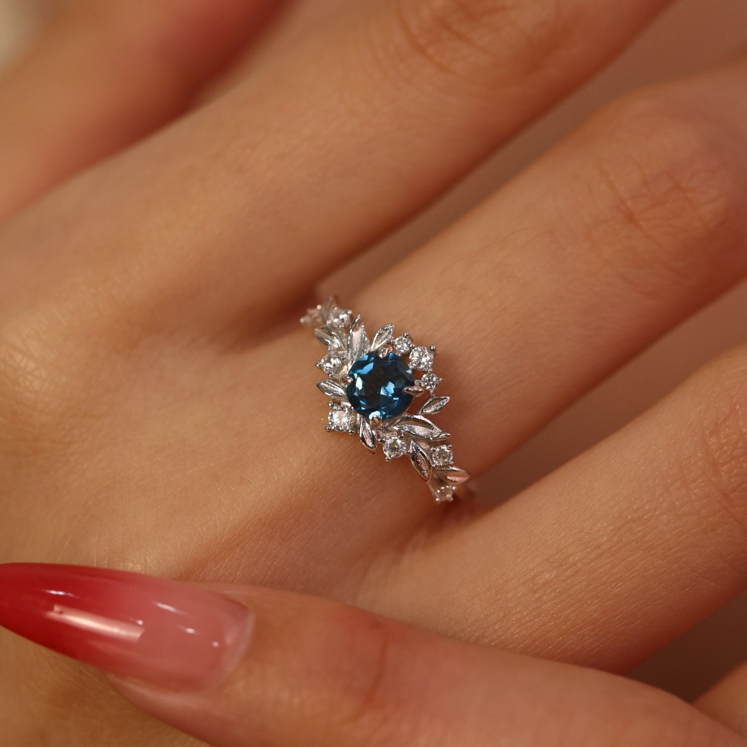 Awaken your spirit with this nature-inspired London blue topaz ring, capturing the magic of morning light and the beauty of blooming love. Designed for dreamers and romantics, this fantasy floral ring features a round London blue topaz nestled at the center, radiating depth and brilliance.