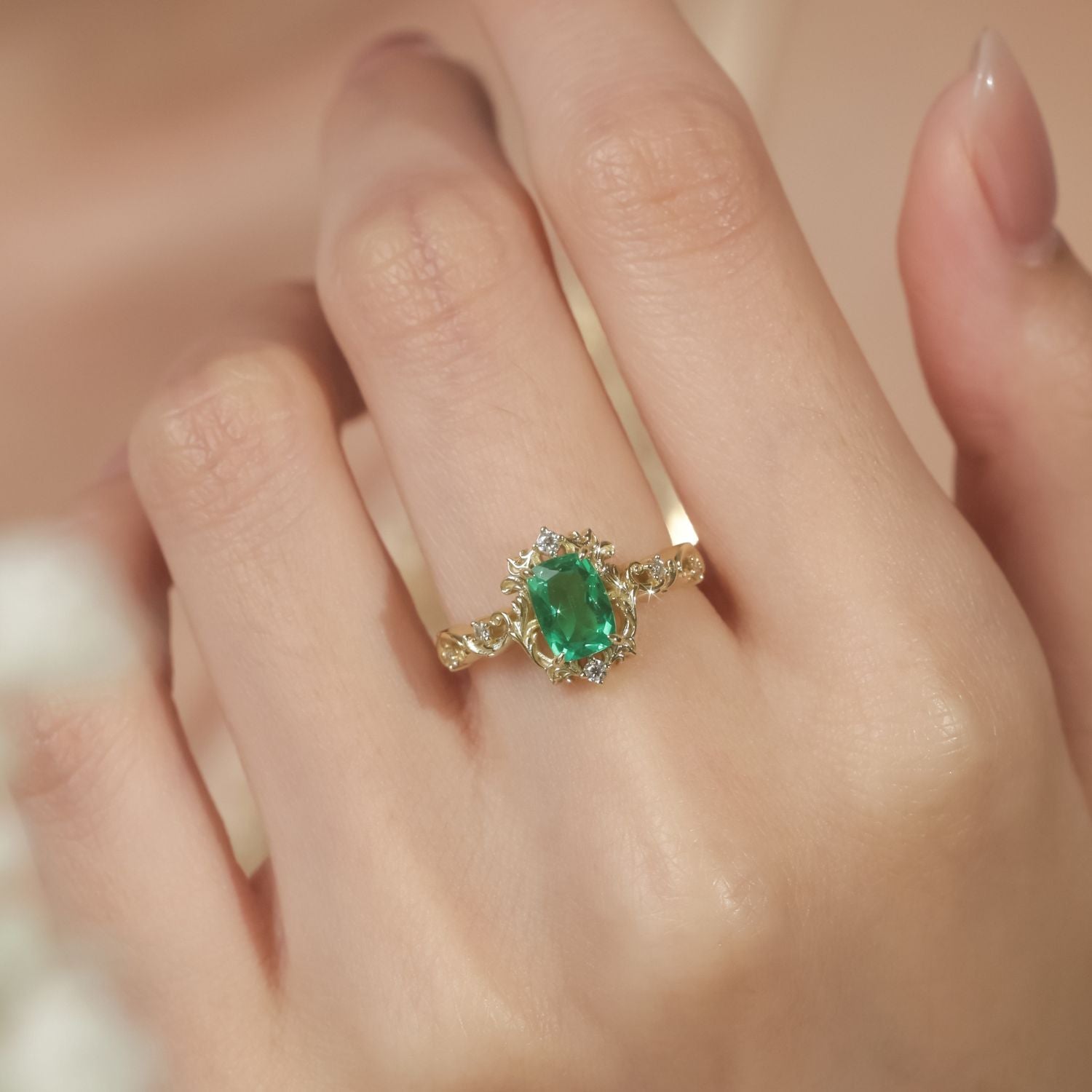 Set in a delicately sculpted gold filigree band, this piece evokes the lost realm of Arloria, where only those born under the twilight star could inherit the crown. Inspired by ancient crests and magical heirlooms, the design features sparkling moissanite accent stones symbolizing promises of love, loyalty, and legacy. Perfect as an engagement ring, fantasy promise ring, or fairy tale jewelry piece, this regal ring is for the enchantress at heart—one who guards her magic, honors her story, and reigns in her own way.