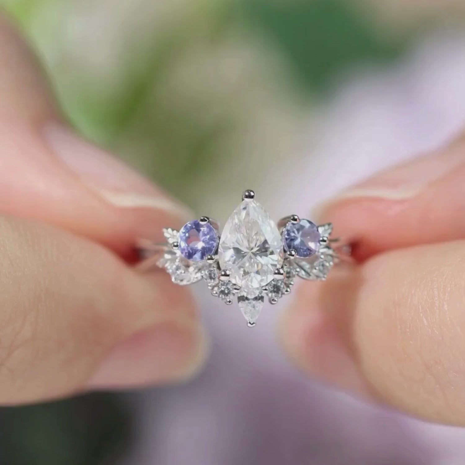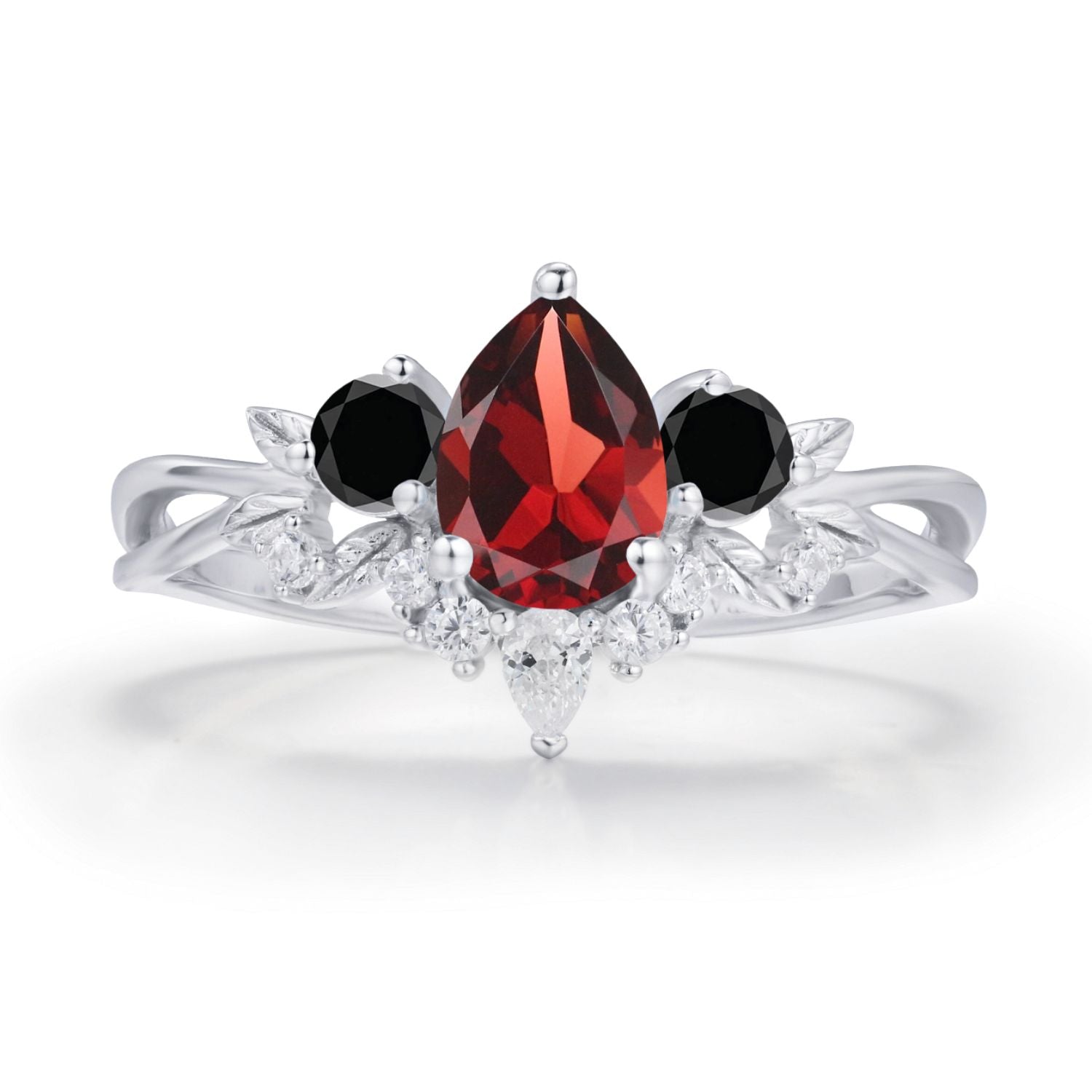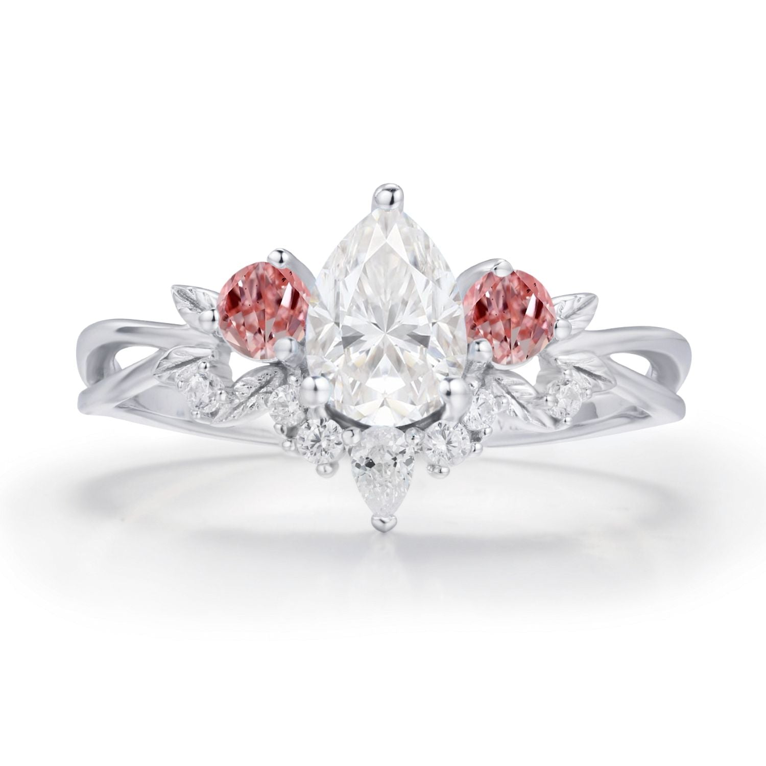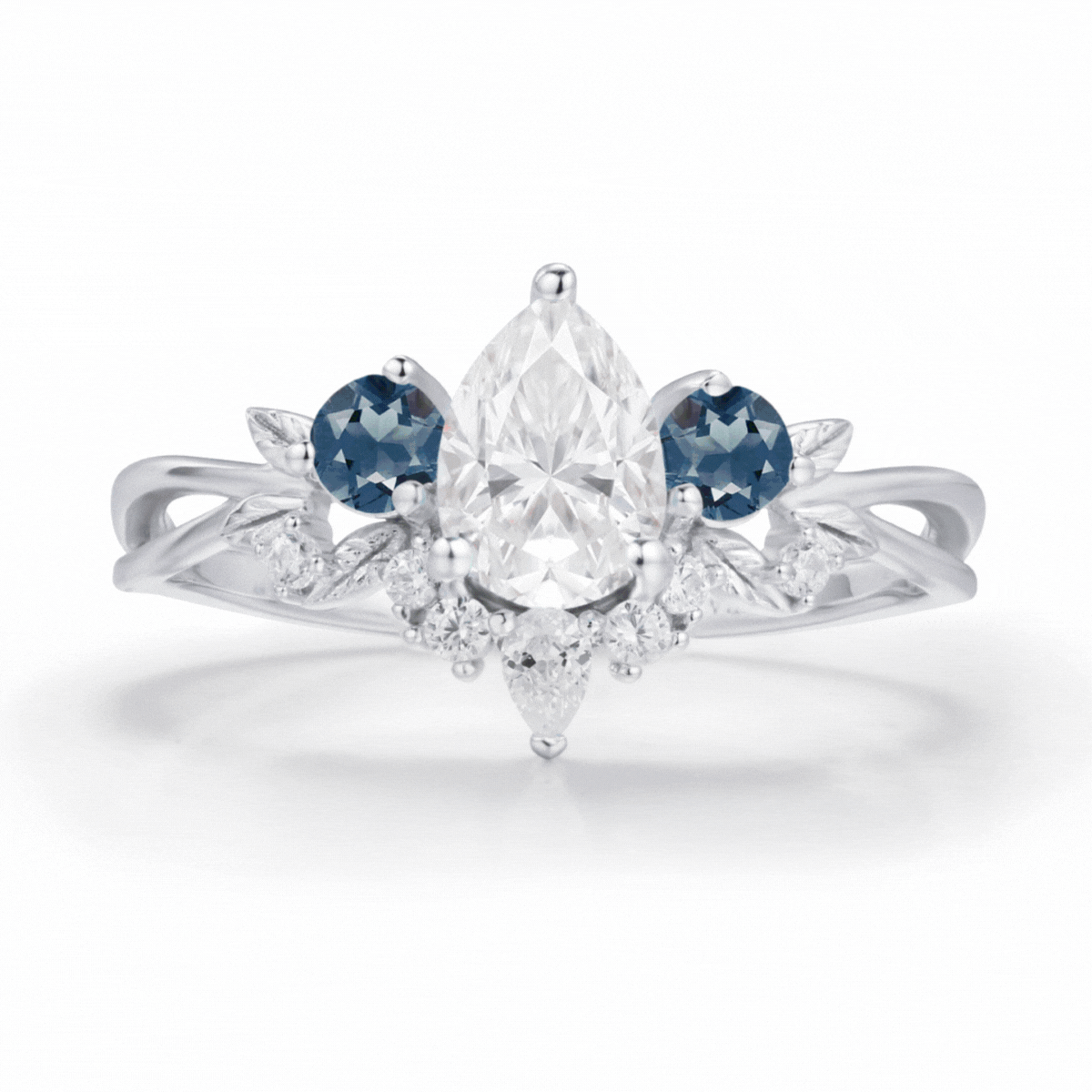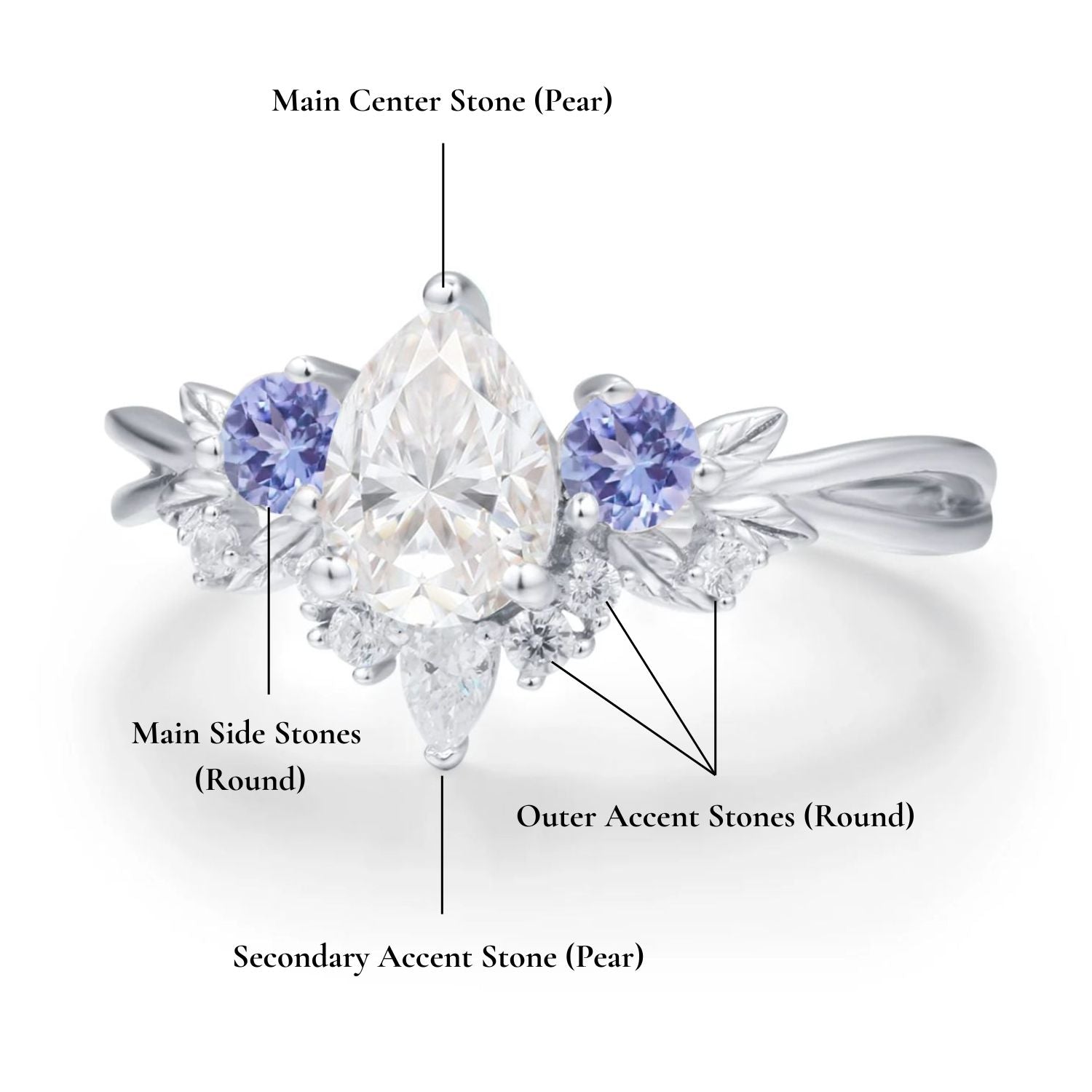 ✦ Customizable secondary pear-cut accent stone (moissanite, sapphire, and more)