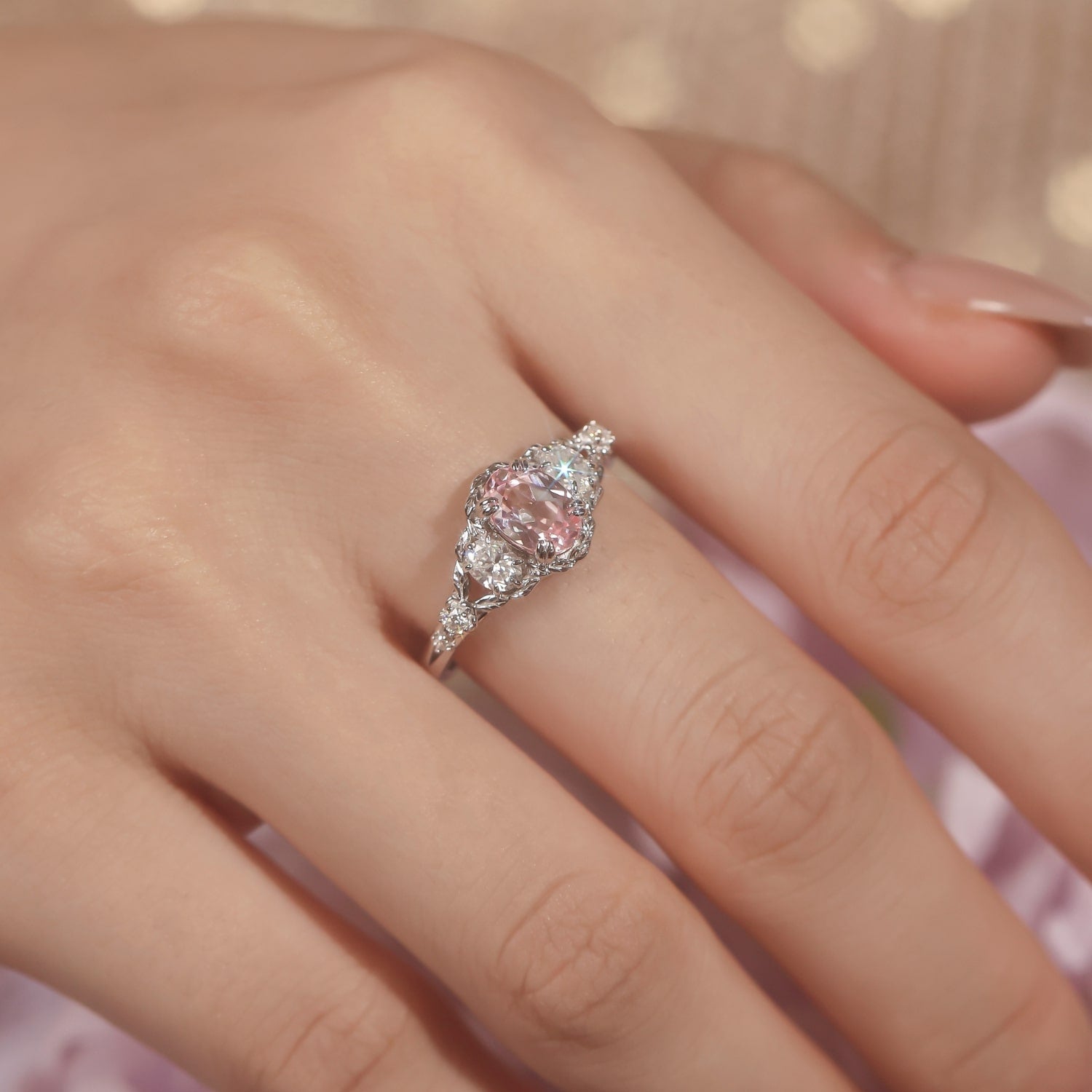 Delicate, hand-carved leaf details wrap around each gem, shielding your promise like a sacred spell.