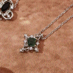 Suspended on a delicate 14K white gold vermeil chain, this fantasy-inspired necklace blends gothic charm with natural elegance. Whether worn alone as a statement or layered with your favorite pieces, or given as a July birthstone gift, it’s made for those who seek jewelry with meaning and mystery.