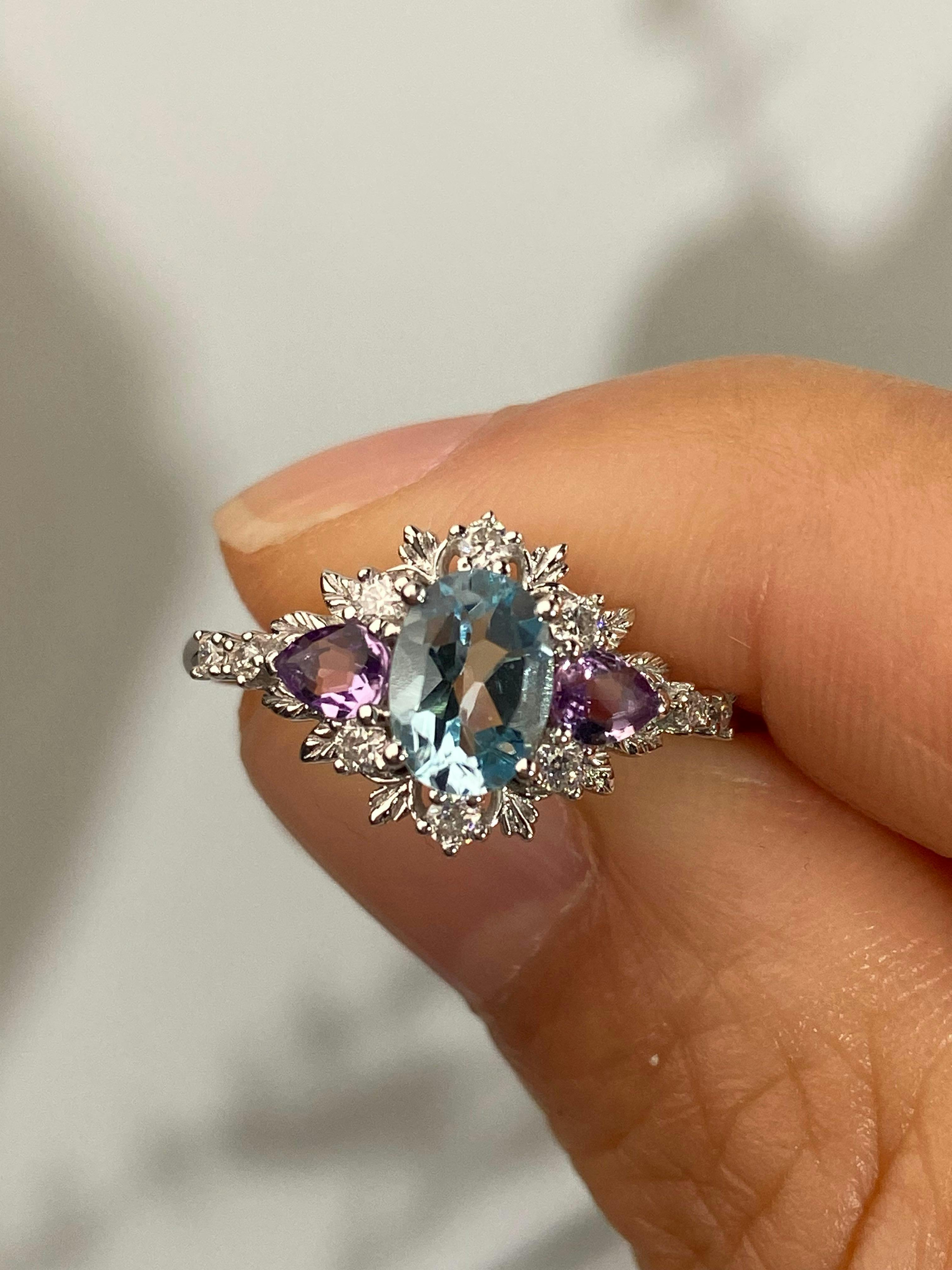 I chose the Dahlia Aquamarine Tanzanite Ring for my beautiful wife to celebrate our 15th anniversary—the crystal anniversary. The aquamarine’s cool, oceanic glow paired perfectly with the tanzanite’s twilight hues, making it a stunning piece. Yet, despite its beauty, it truly came to life only when she wore it—transforming from a jewel into a radiant reflection of her own elegance and grace.