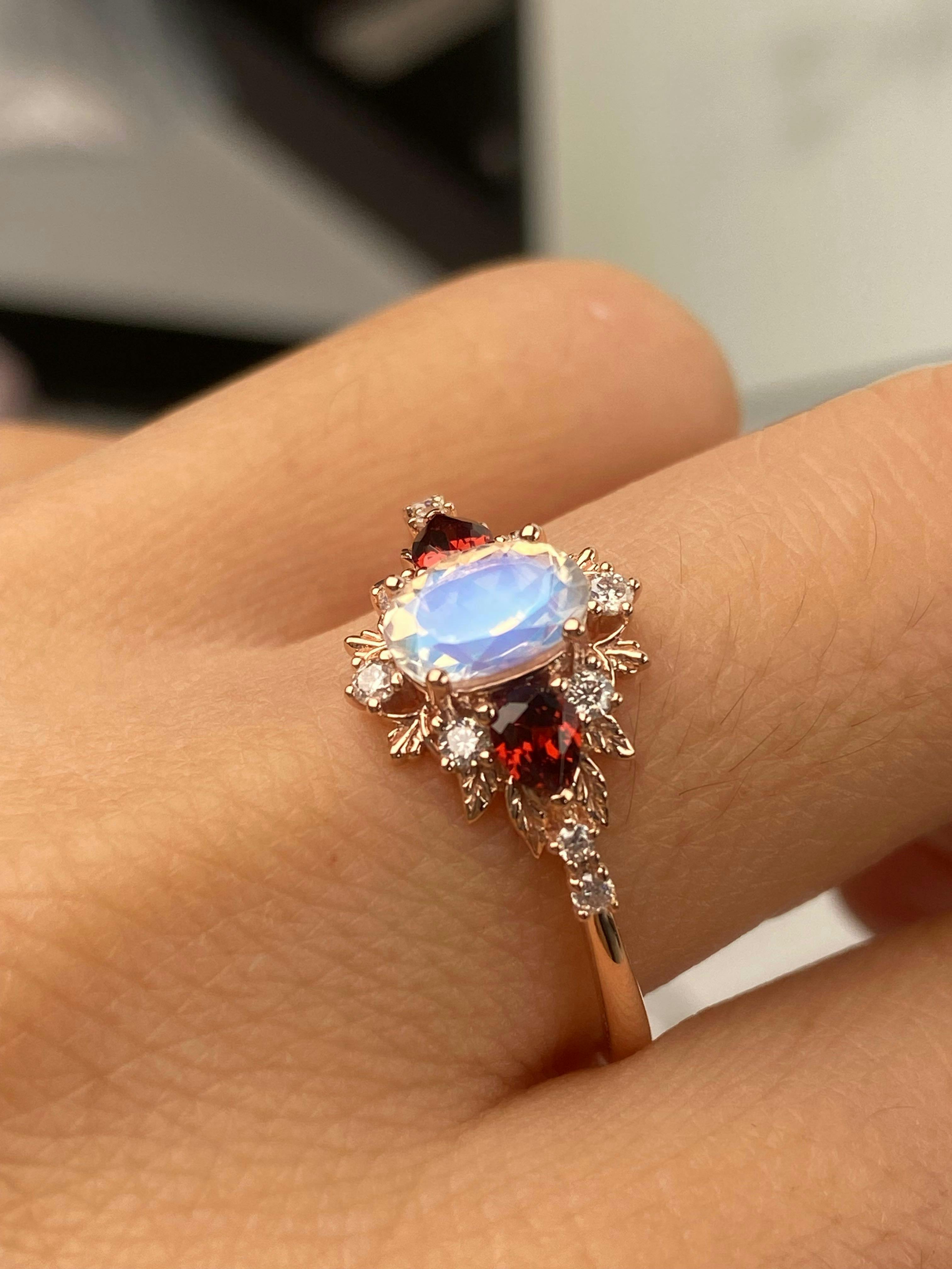 My fiancé picked this ring on his own, and I’m seriously impressed. The moonstone really does glow. The most magical ring I ever had!