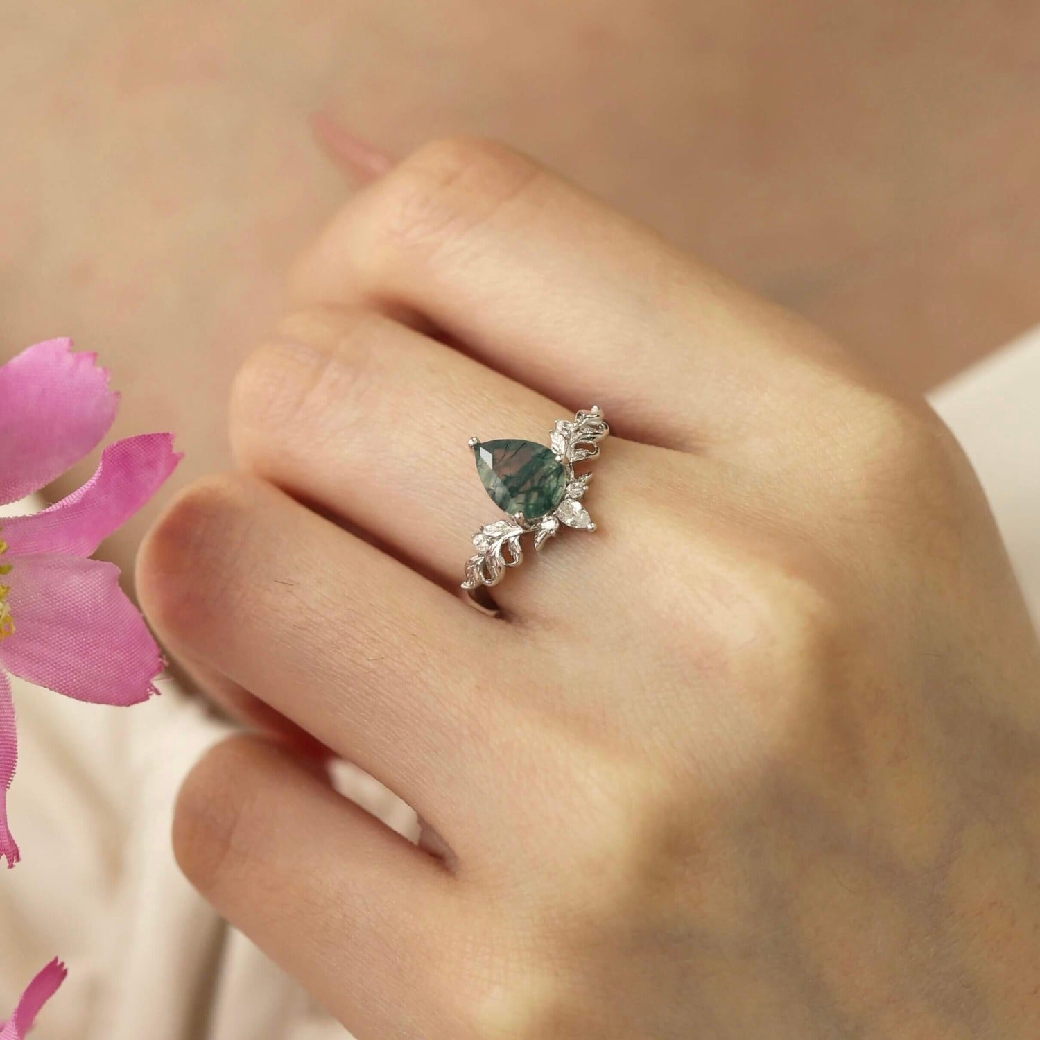 ✦ 6x8mm natural pear-cut moss agate (center stone)
