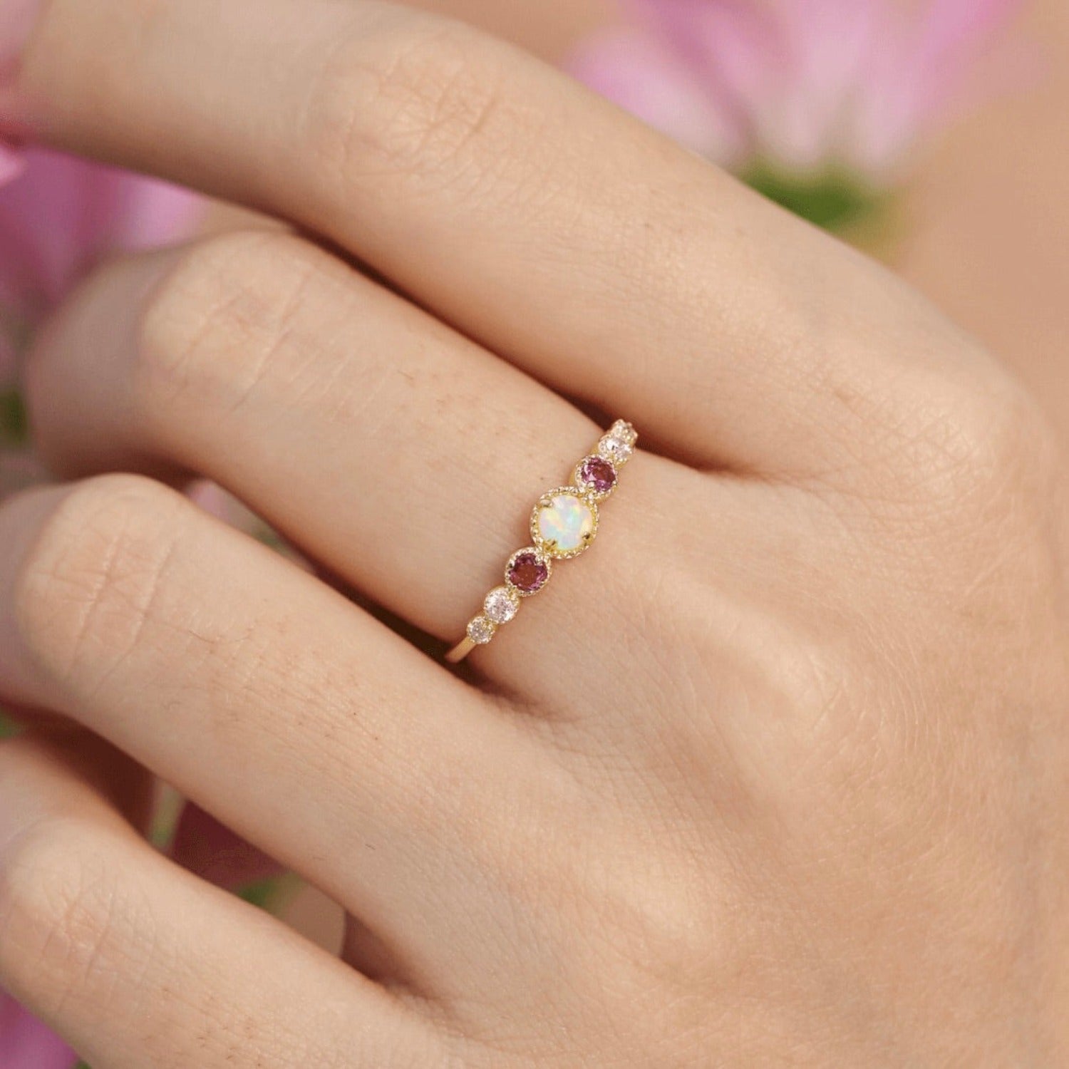 Whether chosen as a romantic promise ring, a meaningful October birthstone gift, or an alternative engagement ring, this multi-stoned ring makes a symbolic reflection of balance, unity, and the divine beauty within.