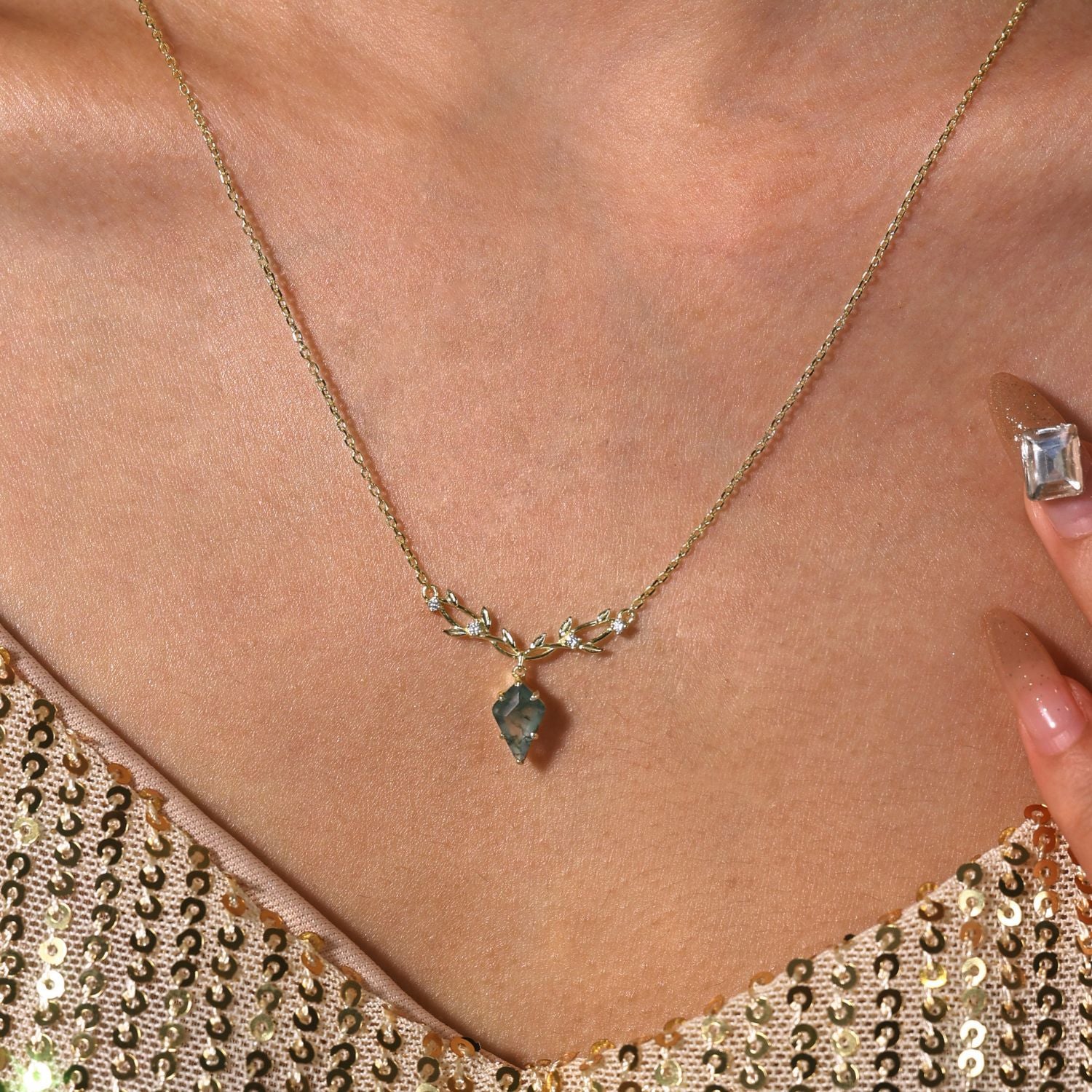 Rooted in ancient Elven lore and inspired by the timeless beauty of enchanted forests, the Elven Entwine Moss Agate Necklace is a radiant fusion of fantasy elegance and nature’s quiet strength.