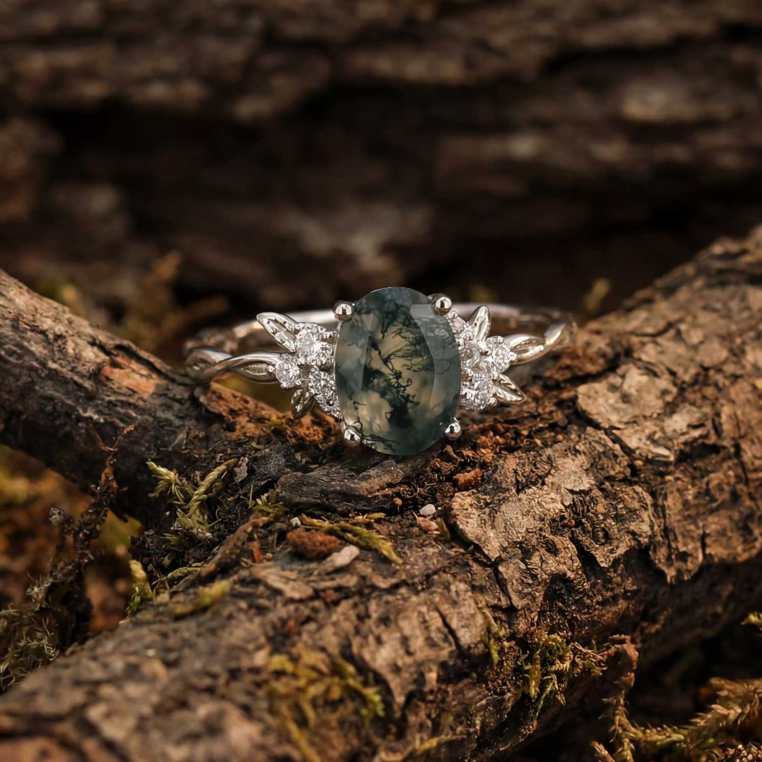 ✦ Center Stone: 8x6mm oval Moss Agate
