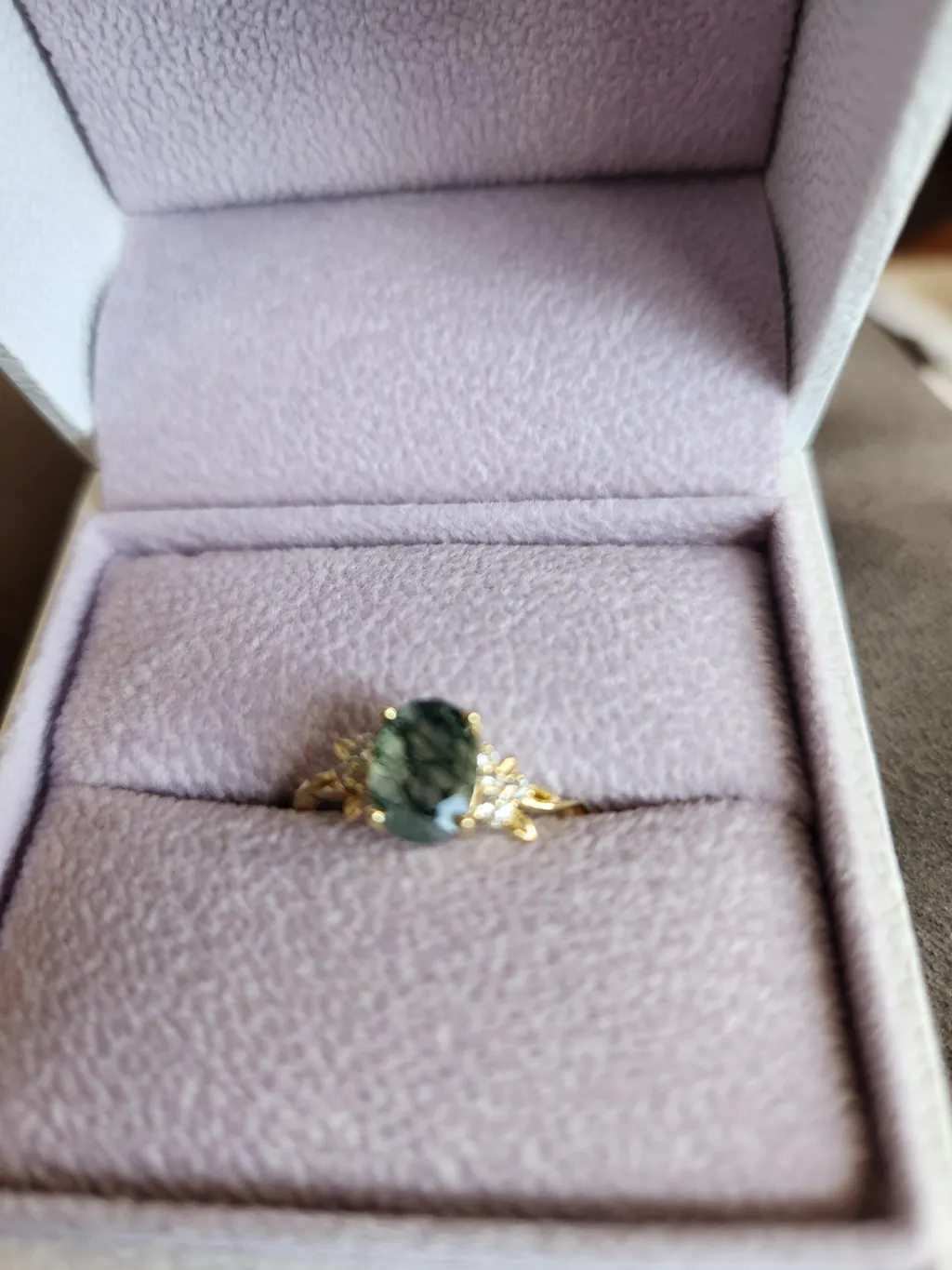 My husband got me this ring for Christmas 2024 and it’s absolutely more gorgeous in person. I get so many compliments on it all the time. Moss agate is my favorite and the way it shines in the sunlight is so unreal. This was the first purchase for either of us from Azura and it definitely won’t be our last. 10/10 recommend