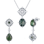 ✦ Center Stone: 6x8mm oval Moss Agate (Necklace), 6x8mm pear Moss Agate (Earrings)