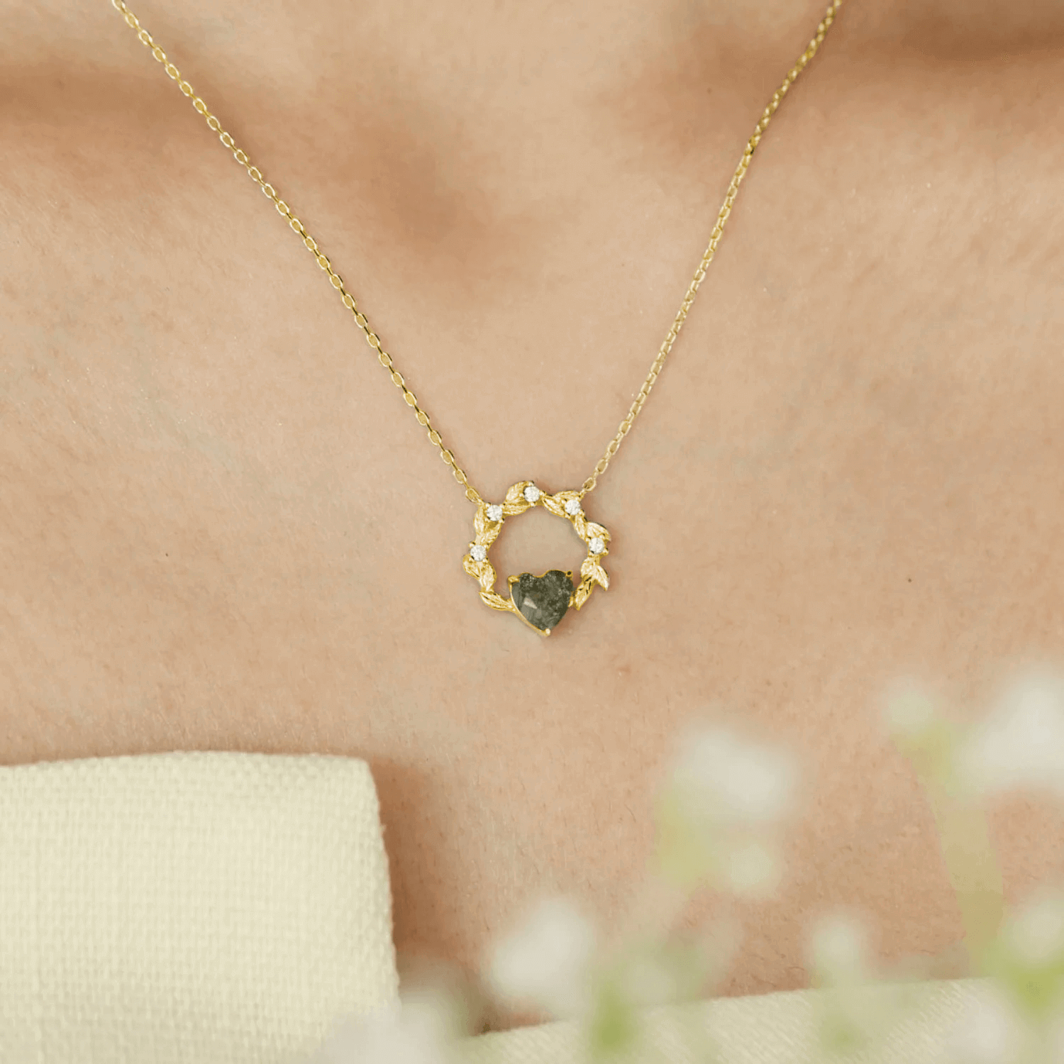 The Everlasting Heart Cut and Heart’s Desire Moss Agate Ring and Necklace Set is a breathtaking symbol of eternal love, inspired by the quiet strength of nature and the magic of deep-rooted connection.