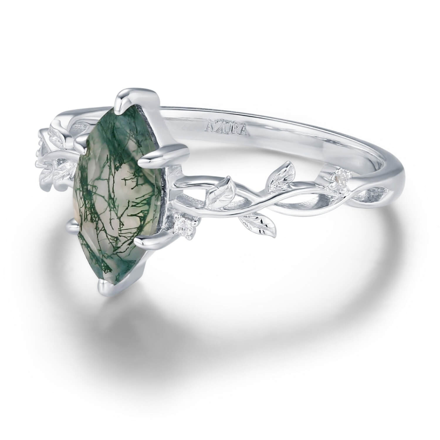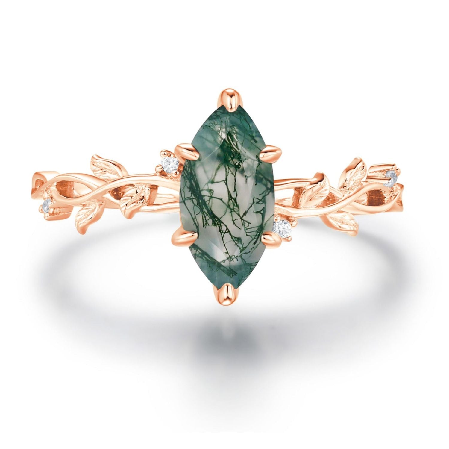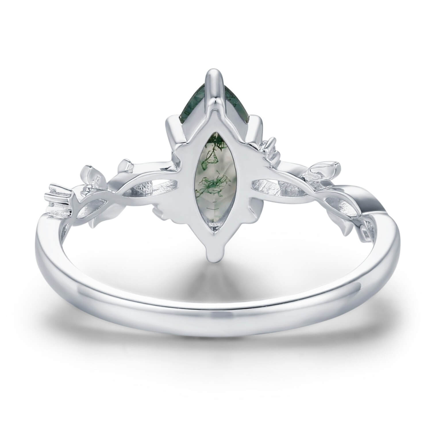 The Everlasting Marquise Cut Moss Agate Ring is a breathtaking symbol of eternal love, inspired by the quiet strength of nature and the magic of deep-rooted connection.