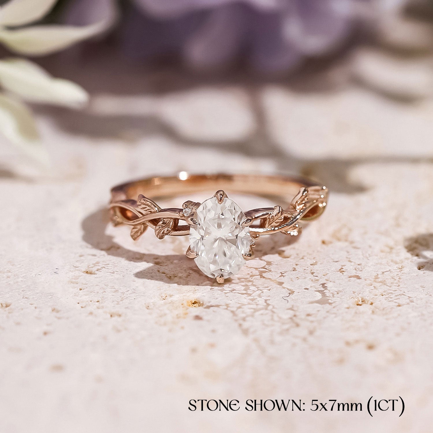 Whether chosen as a moissanite engagement ring, a nature-inspired wedding ring, or a thoughtful anniversary gift, this oval ring represents love that is patient, rooted, and eternal.