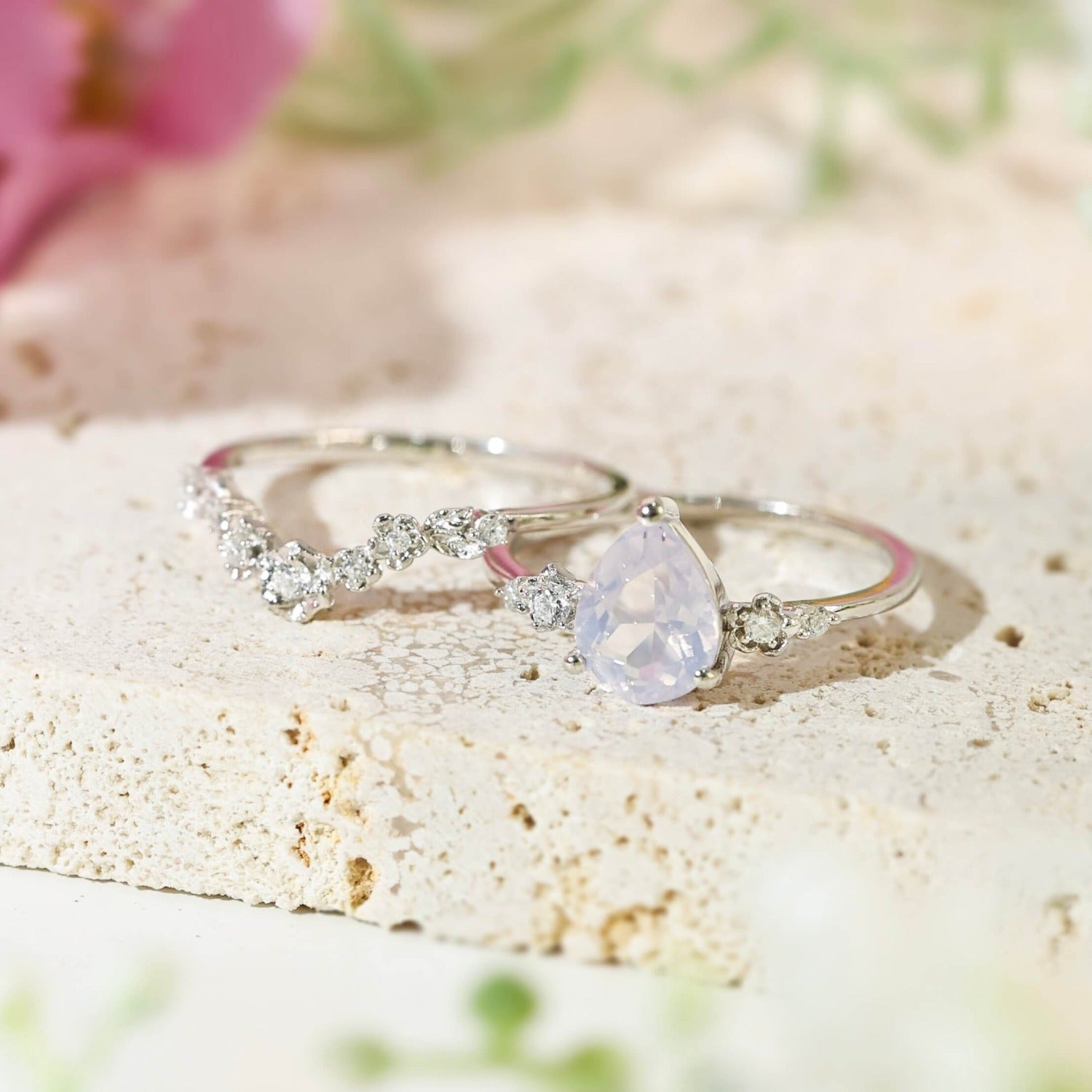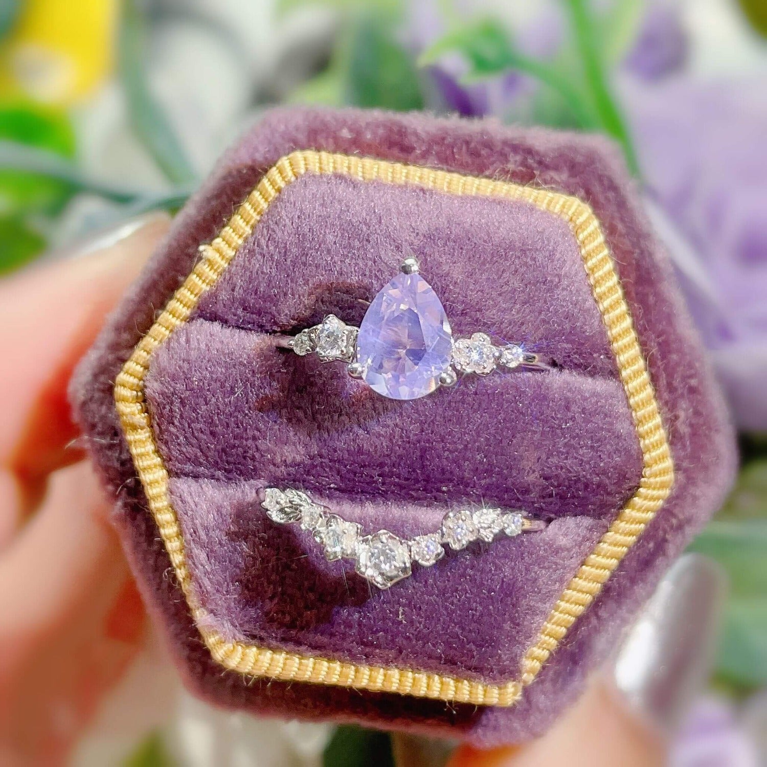 ✦ 8x6mm natural pear-cut lavender amethyst (center stone)