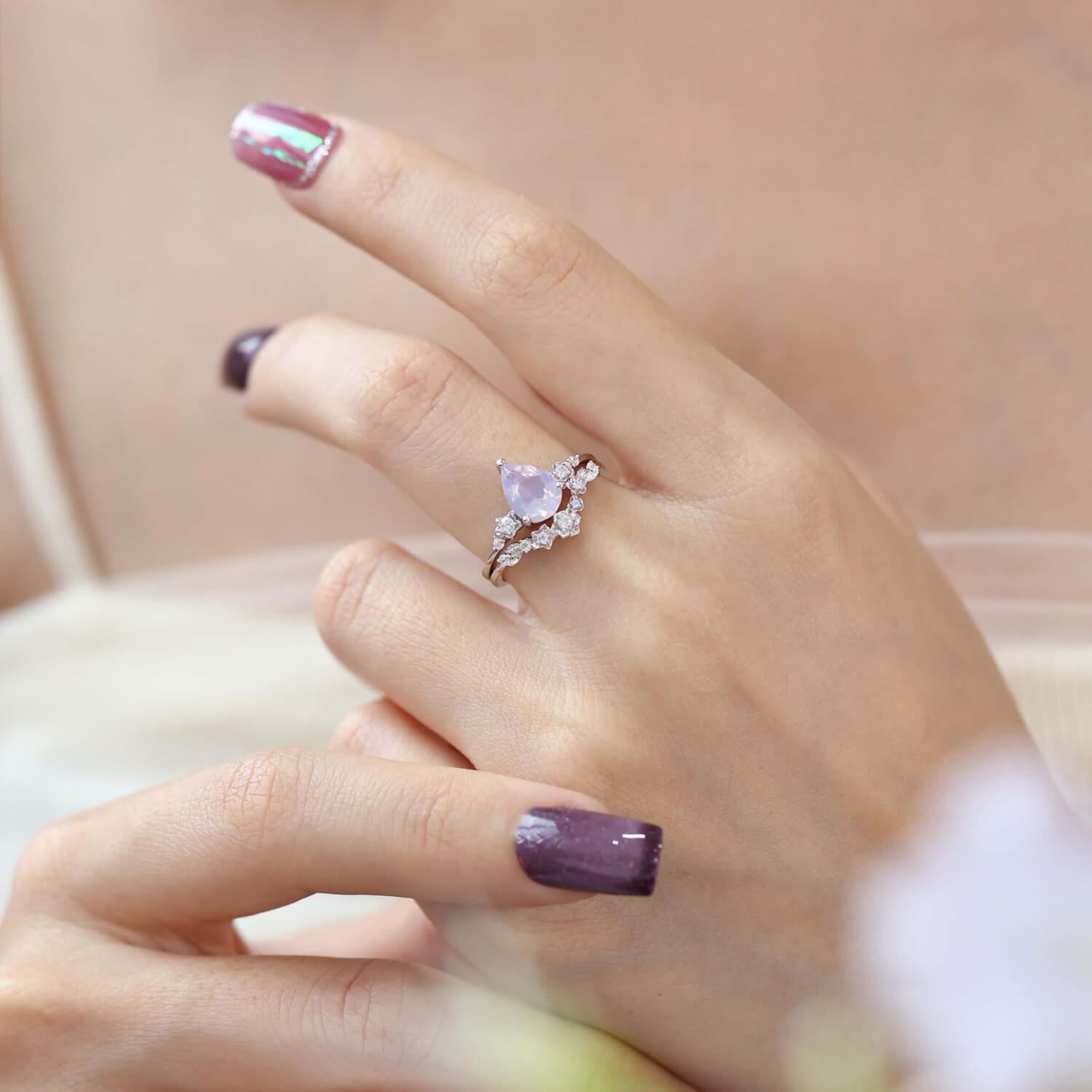 ✦ Center Stone: 8x6mm pear Lavender Amethyst