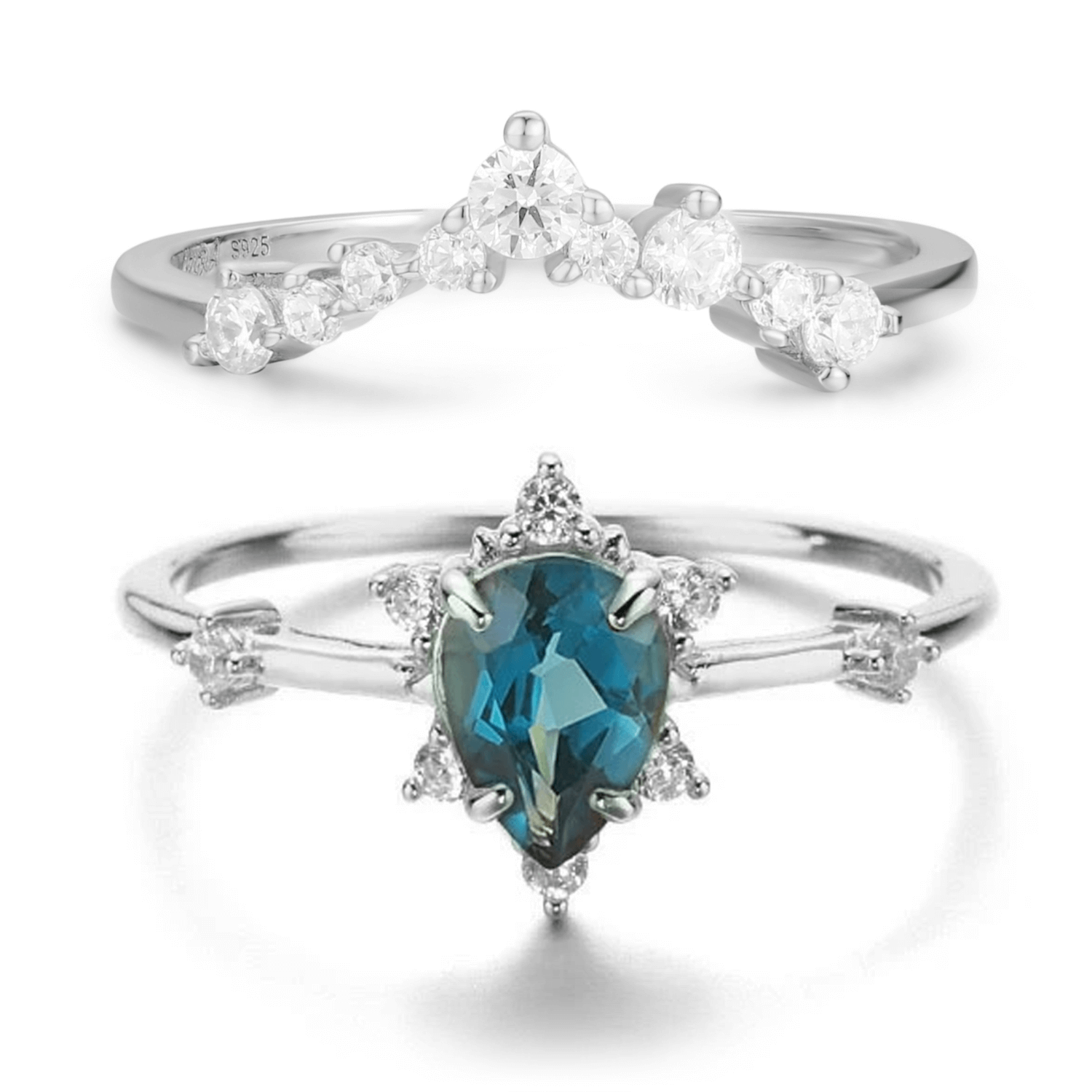 ✦ 5x7mm natural pear-cut London blue topaz (main ring center stone)