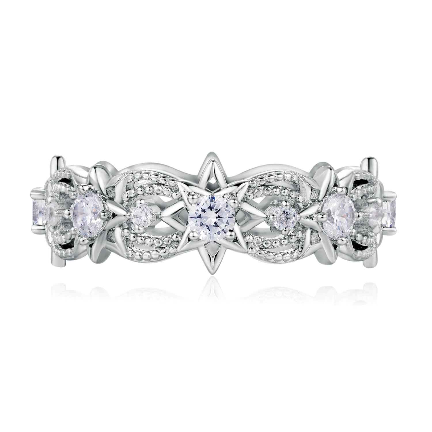 Whether worn as a meaningful promise ring, a romantic gift, or a statement of timeless elegance, this lace eternity ring invites you to carry the brilliance of the stars wherever you go.