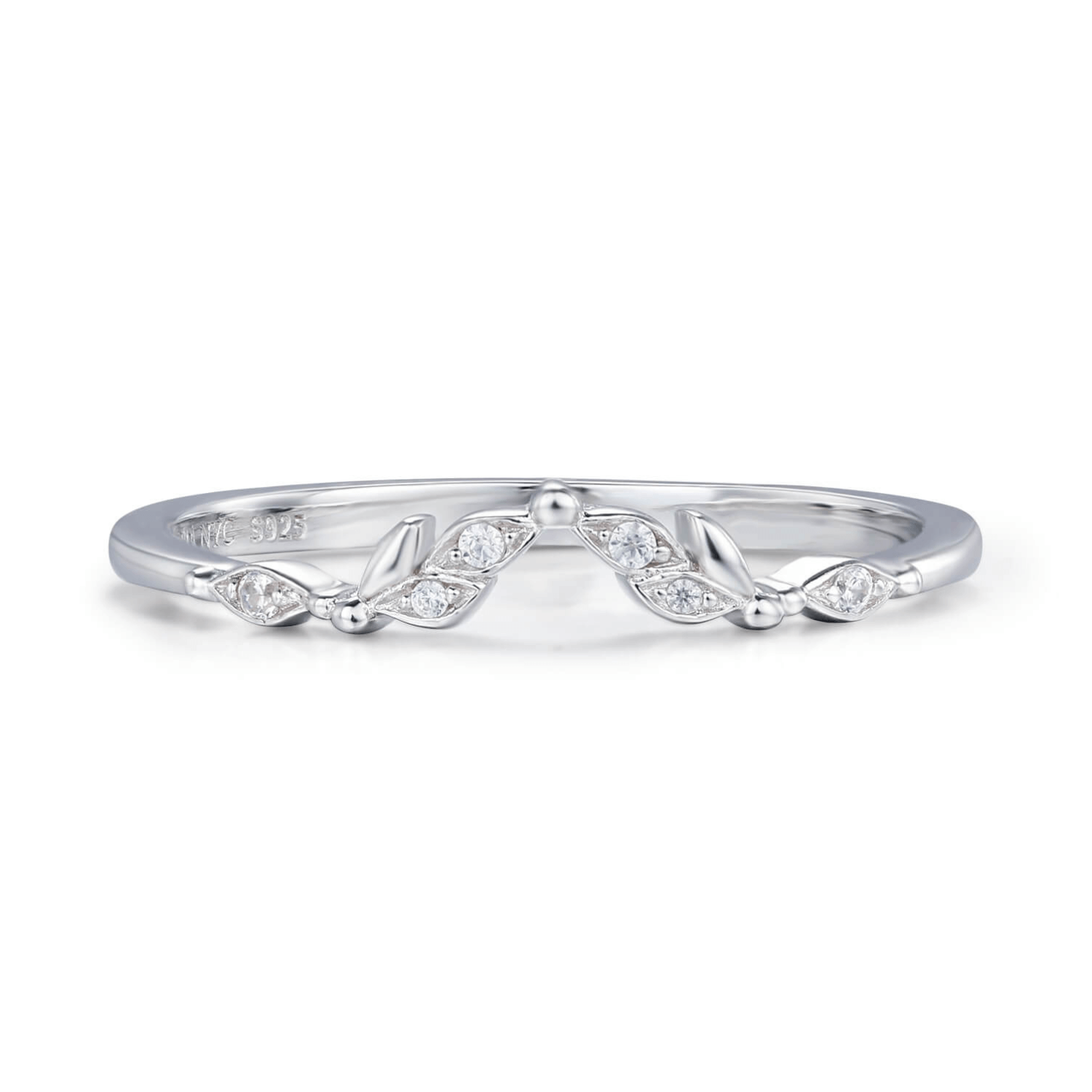 Add a touch of magic to your everyday style with this nature-inspired stackable ring. Featuring delicate leaf motifs accented with sparkling gems, this dainty band captures the ethereal glow of moonlit forests and fairy tale dreams.