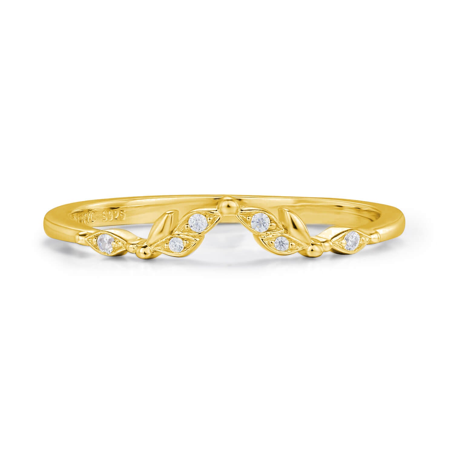 Add a touch of magic to your everyday style with this nature-inspired stackable ring. Featuring delicate leaf motifs accented with sparkling gems, this dainty band captures the ethereal glow of moonlit forests and fairy tale dreams.