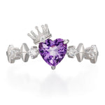 To protect her kingdom, the celestial guardians shaped her essence into a ring: a radiant heart-shaped purple gem glowing with truth and intuition, crowned by a tiara to honor her wisdom. The band was forged from enchanted links—each one a shield to guard the heart, each one a vow to protect love that is pure and enduring.