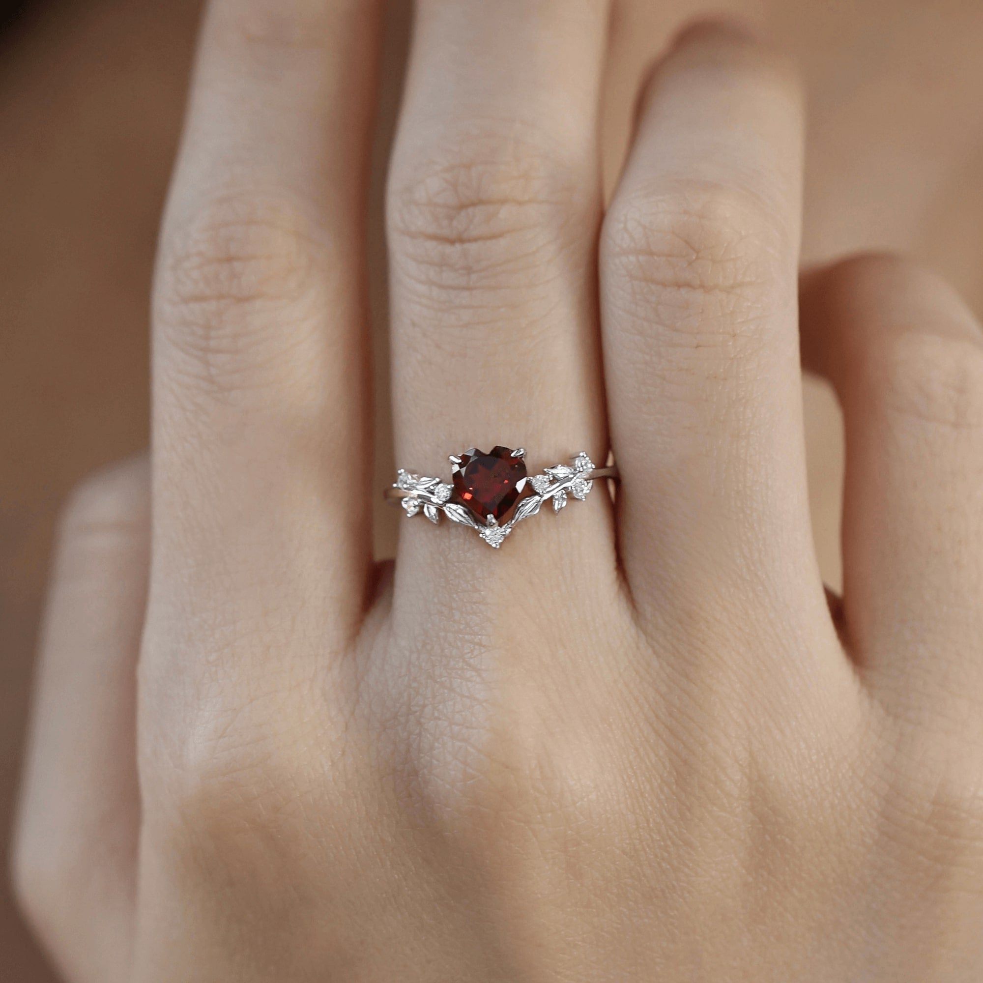 Perfect as a non-traditional engagement ring, a meaningful promise ring, or a thoughtful gift for nature lovers, this red garnet ring brings timeless elegance and heartfelt symbolism to any occasion.