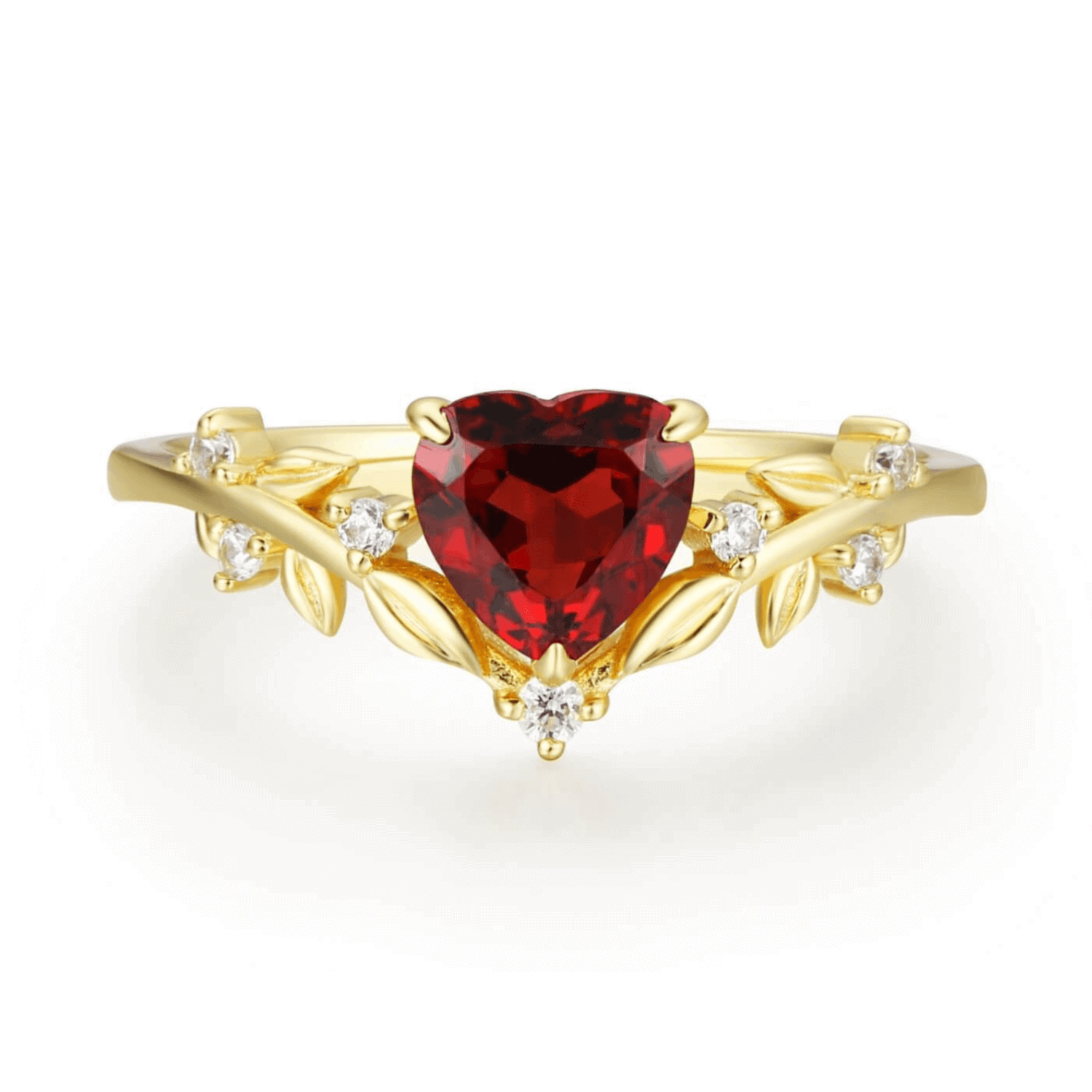 ✦ Center Stone: 6mm heart-shaped Mozambique Red Garnet