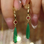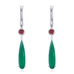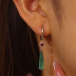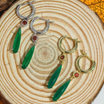 Crafted with a fiery round-cut red accent stone and a gracefully elongated faceted green onyx drop, these earrings are a nod to the iconic imagery of the film—flame and earth, heart and home. The vibrant green onyx evokes the lush, enchanted landscapes of Ingary, while the glowing red stone hints at the fire demon’s eternal spark.