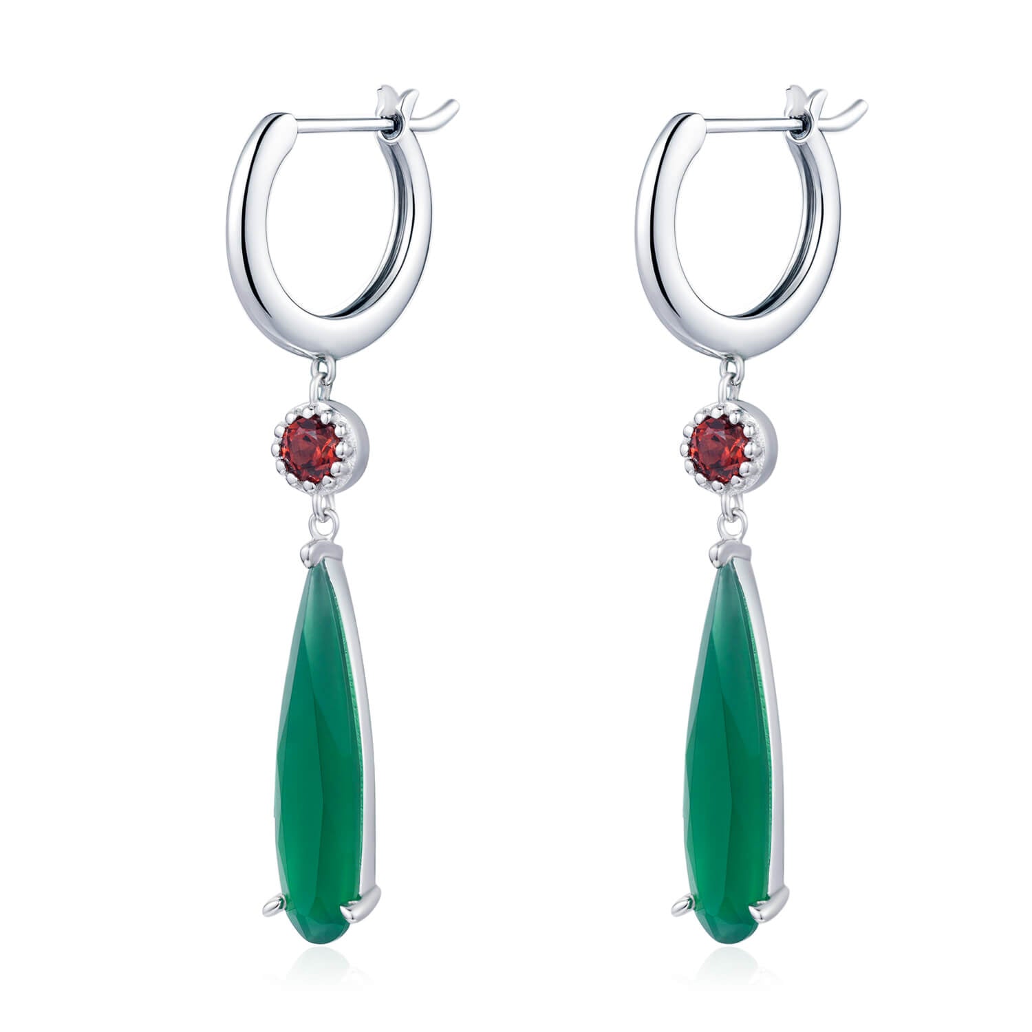 Crafted with a fiery round-cut red accent stone and a gracefully elongated faceted green onyx drop, these earrings are a nod to the iconic imagery of the film—flame and earth, heart and home. The vibrant green onyx evokes the lush, enchanted landscapes of Ingary, while the glowing red stone hints at the fire demon’s eternal spark.
