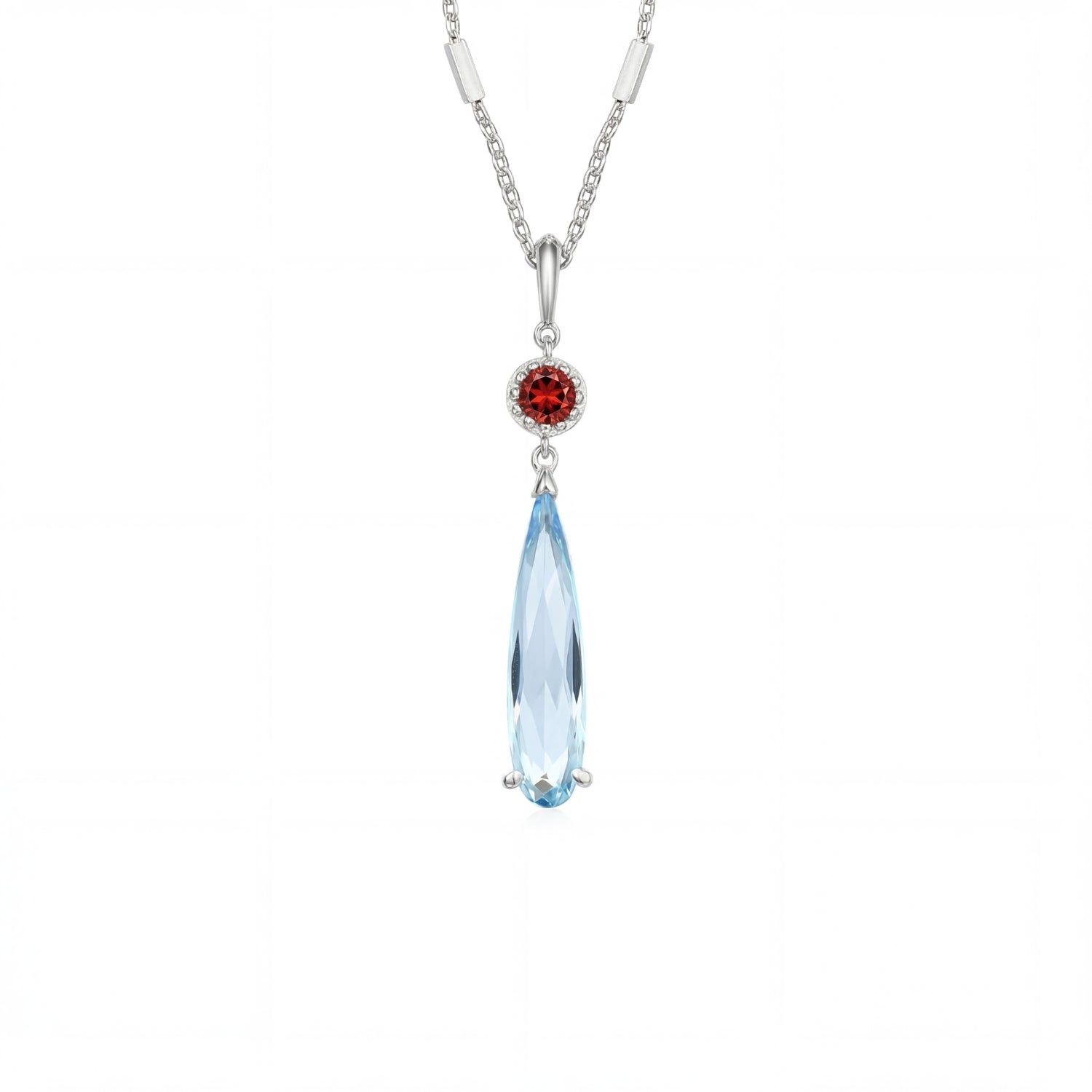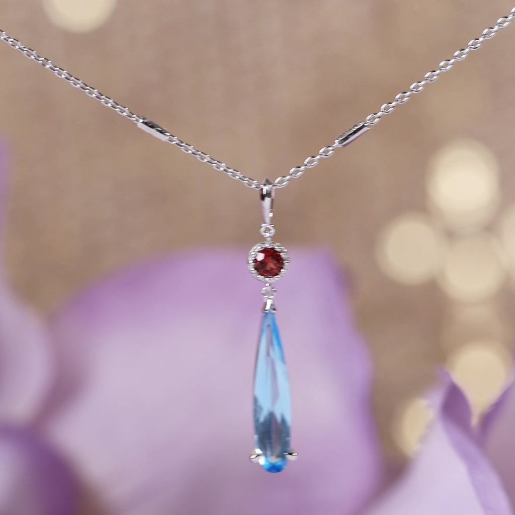 ✦ Gemstones: 17.5x4mm Sky Blue Topaz, 3mm round Mozambique Red Garnet