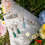 ✦ 17.5x4mm natural sky blue topaz (necklace) and green onyx (earrings)