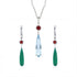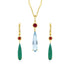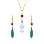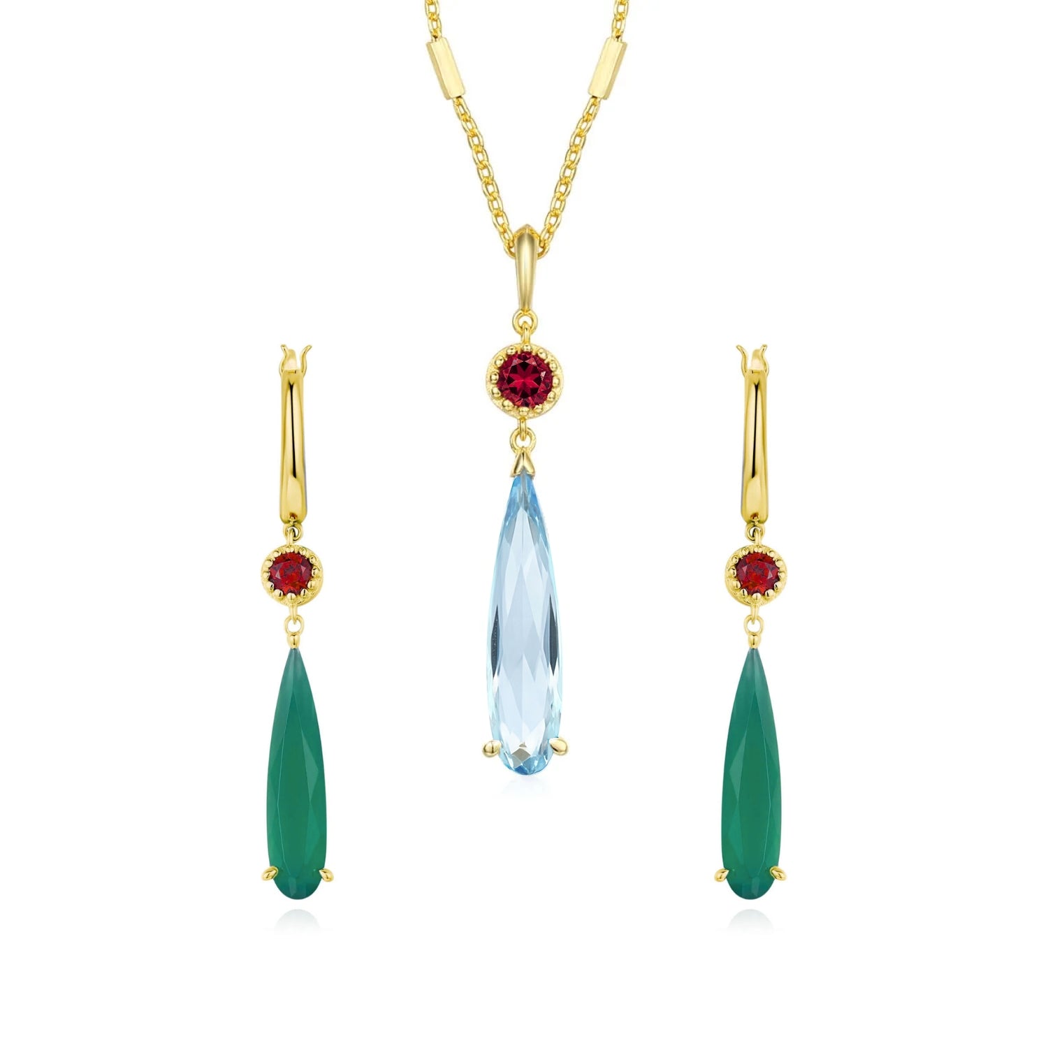 ✦ Gemstones: 17.5x4mm Sky Blue Topaz (necklace) and Green Onyx (earrings), 3mm round-cut natural Mozambique red garnet