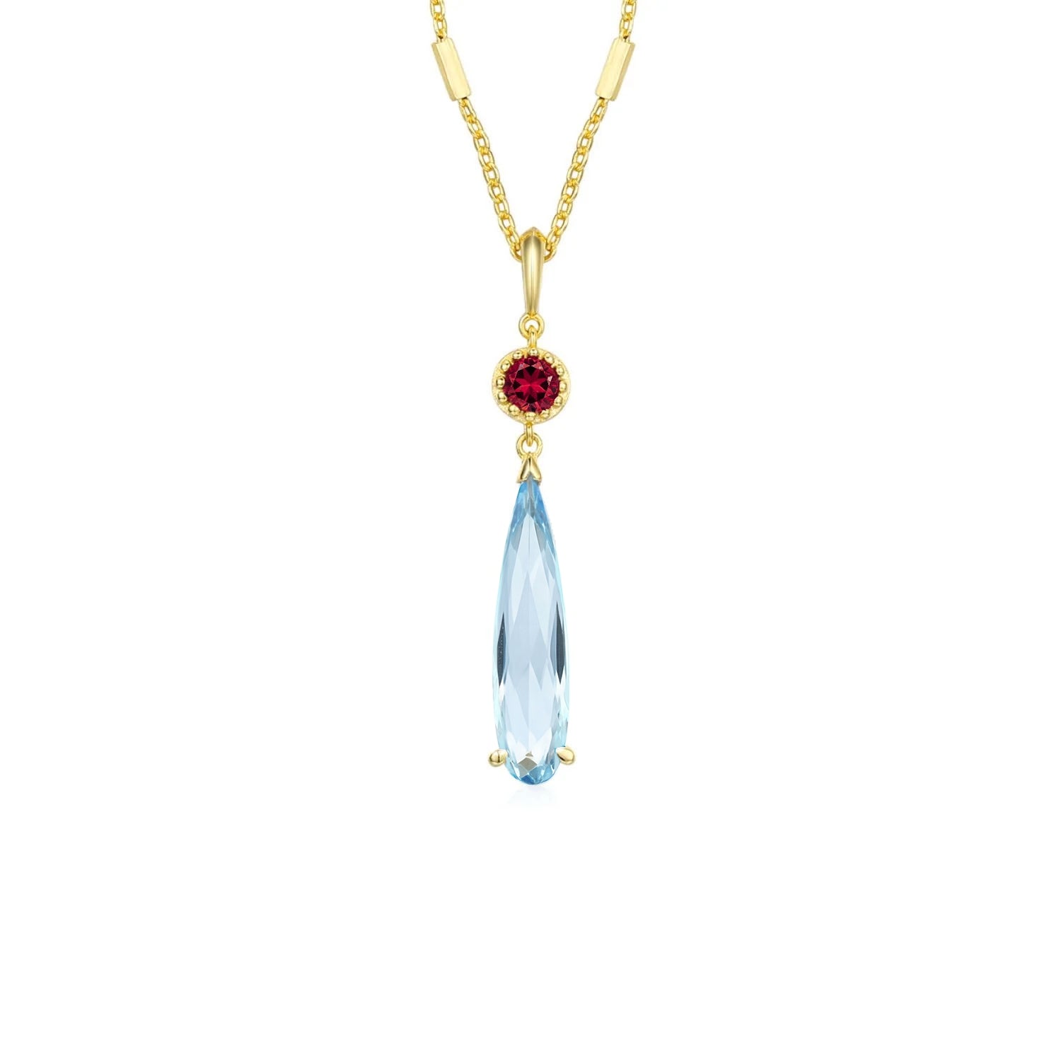 ✦ Gemstones: 17.5x4mm Sky Blue Topaz, 3mm round Mozambique Red Garnet