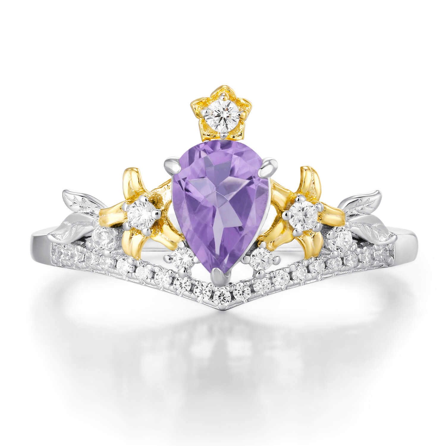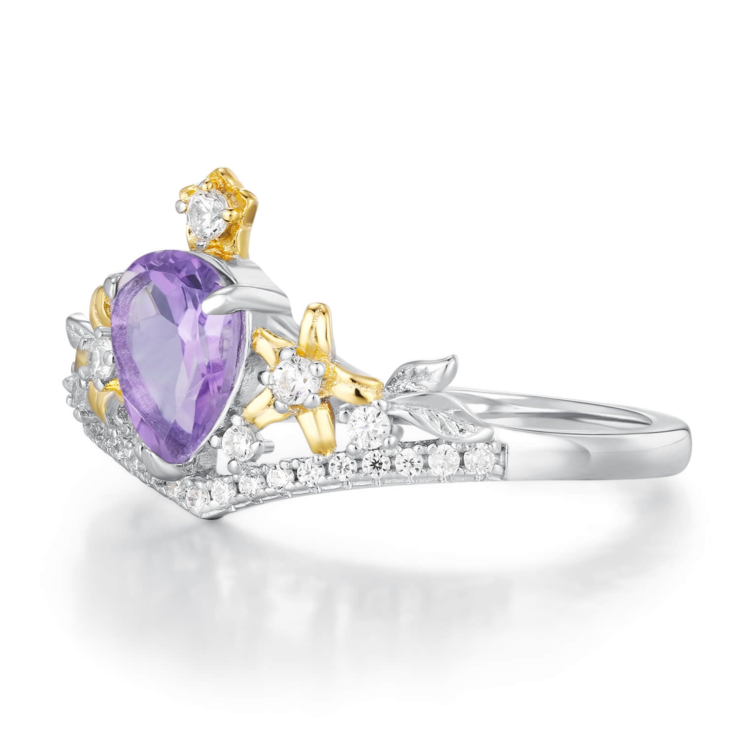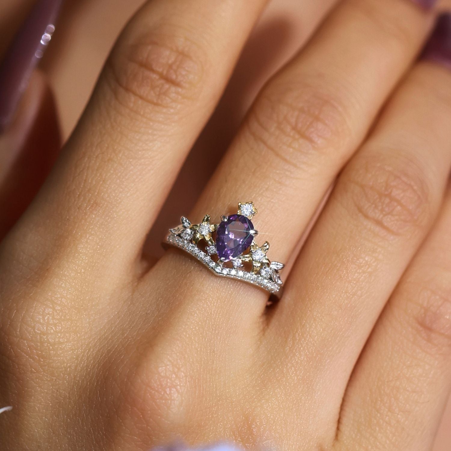 ✦ Center Stone: 5x7mm pear Medium Amethyst