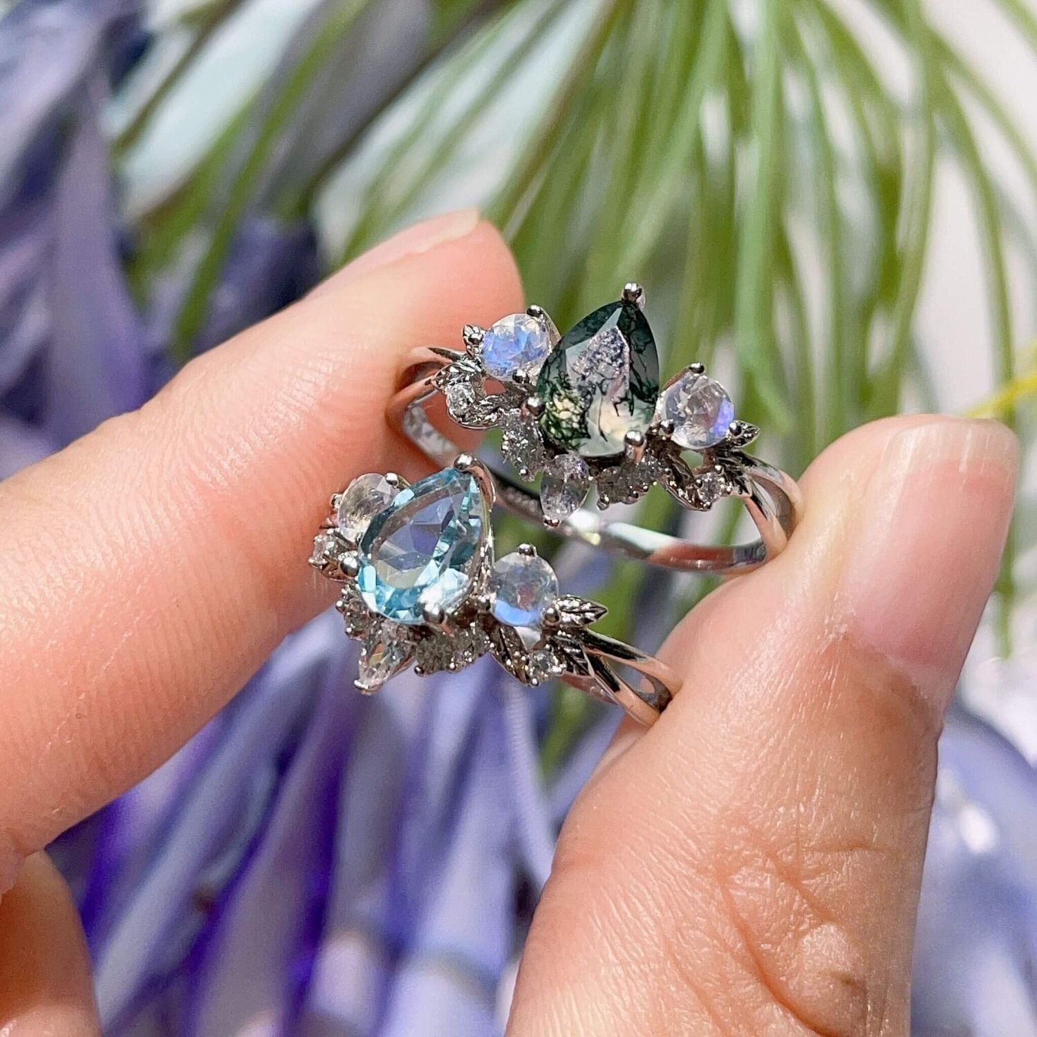 This ring is so enchanting and perfect for our FernGully themed elopement this summer! We were very impressed with the stone quality of the moss agate & moonstone in this ring. We also got to choose my center stone for a reasonable cost and it was worth it! The Woodland stack makes it a perfect pair! Very pleased & definitely recommend! Thank you!!
