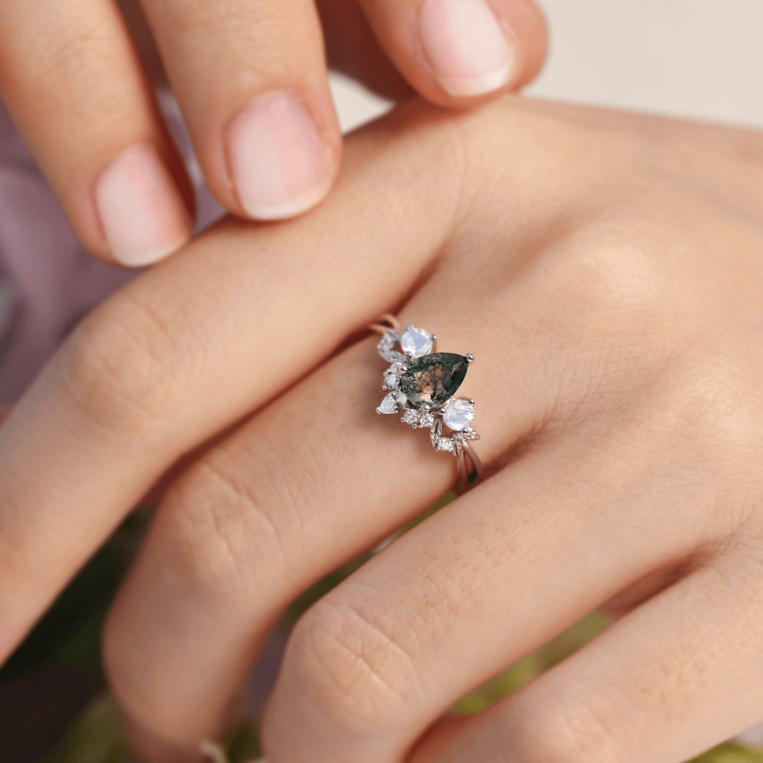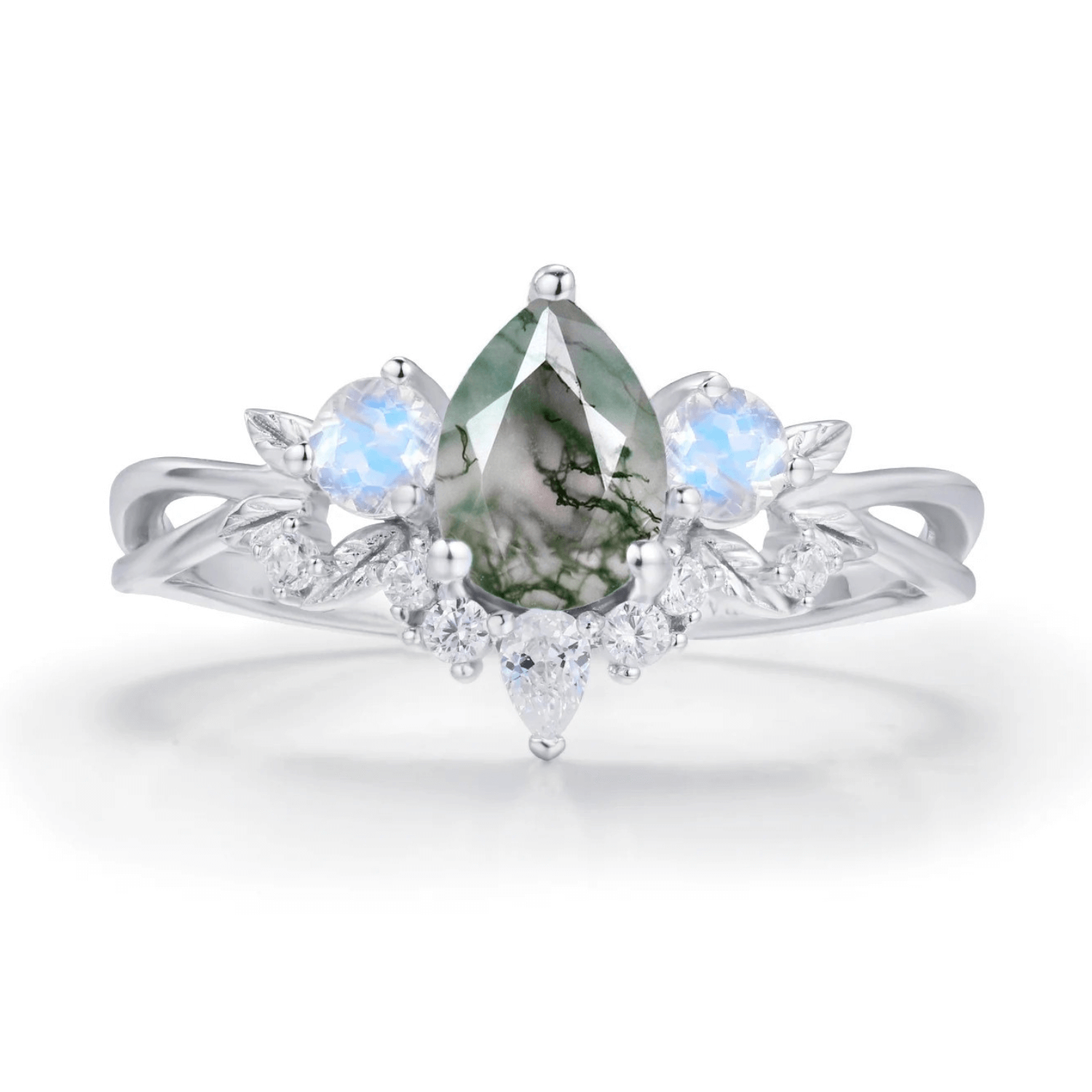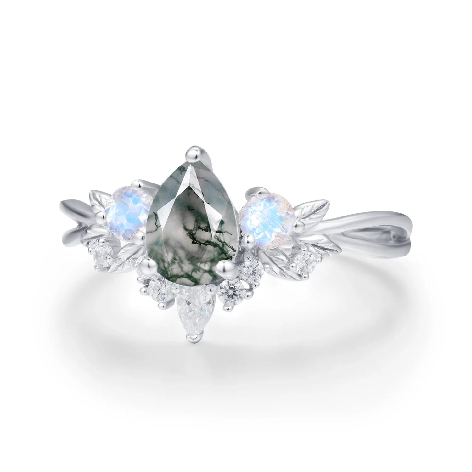 ✦ 5x7mm natural pear-cut moss agate (center stone)