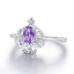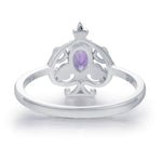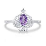 Inspired by the symbolic power of the spade suit in poker, this poker-inspired statement ring blends the timeless symbolism of the spade with the delicate artistry of nature. At its heart is a shimmering oval-cut amethyst gemstone, crowned by ornate leafy scrollwork and gothic floral accents that evoke the shape of a spade blooming with clarity.