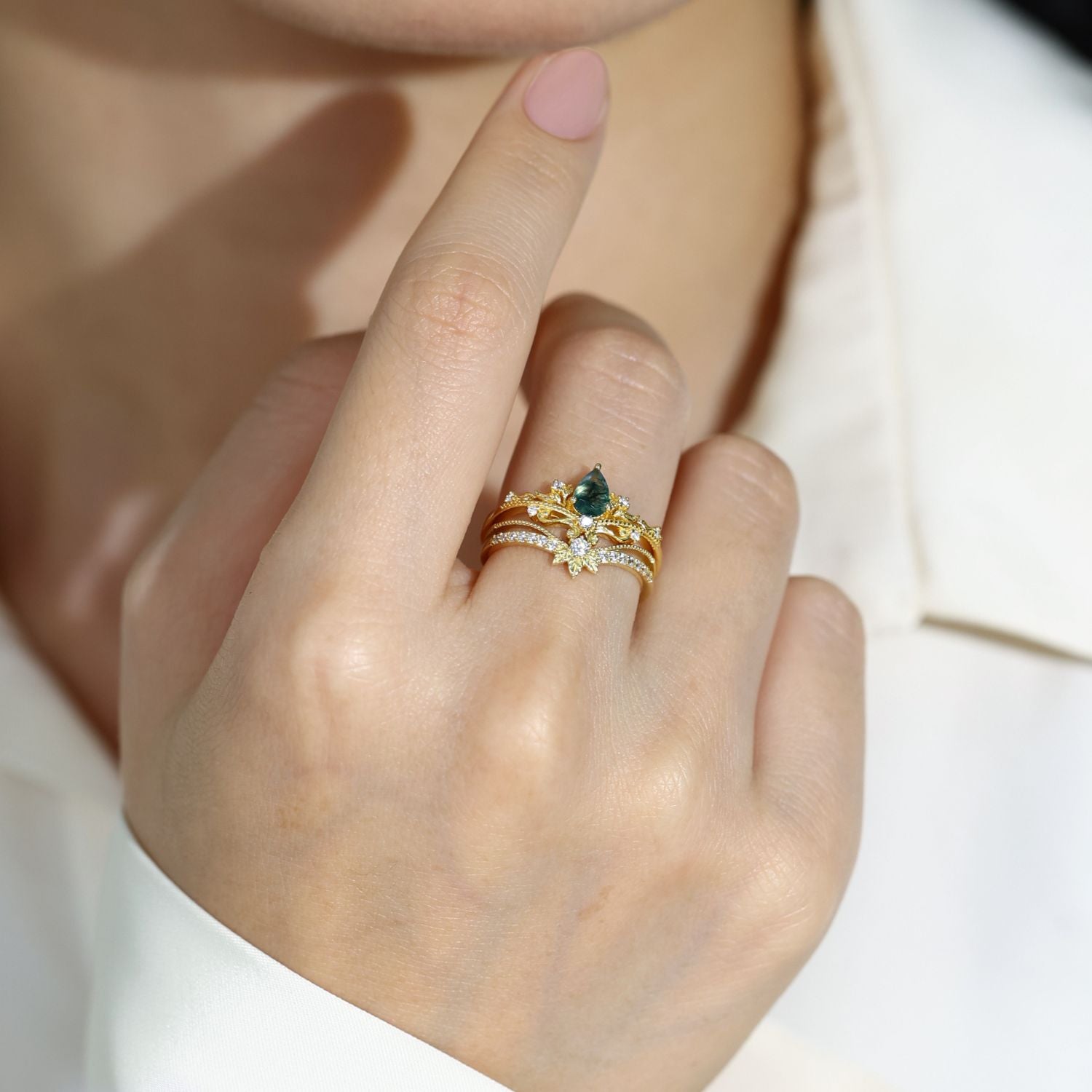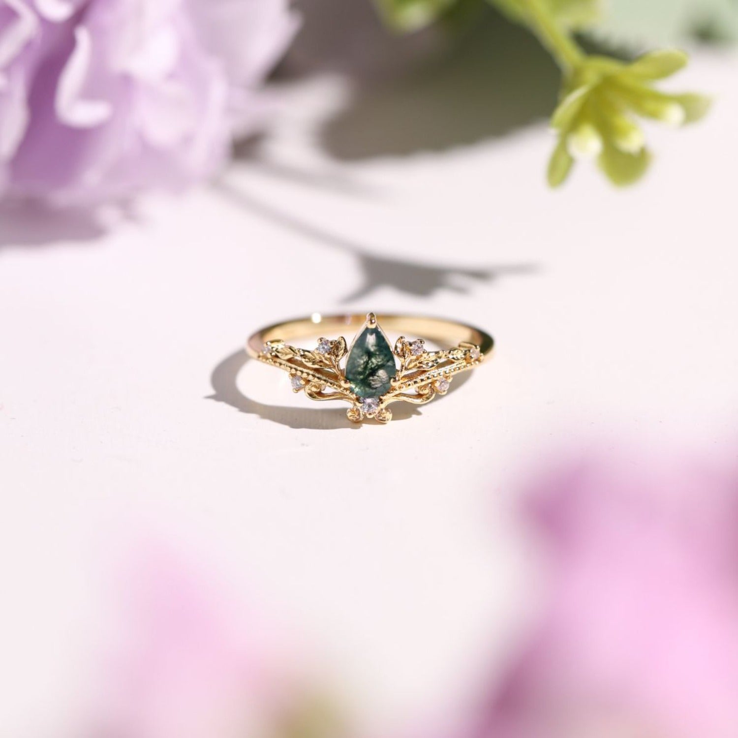 Whether chosen as a moss agate engagement ring, a botanical-inspired promise ring, or a forest-themed keepsake, the Lotus Ring embodies natural elegance with a hint of magic.