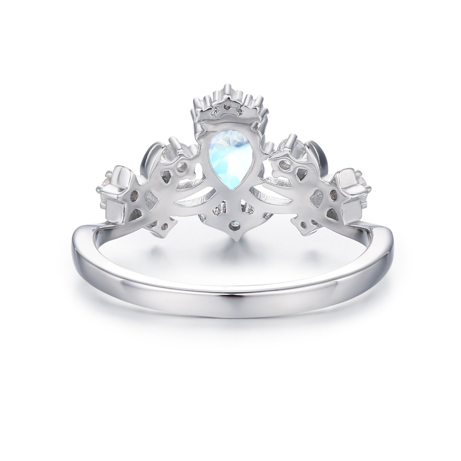 Crafted with intricate detail, this enchanting moon and star ring features a glowing pear-cut moonstone that radiates soft, ethereal iridescence. Framed by twin crescent moons and surrounded by radiant stars, the design symbolizes balance, intuition, protection, and the wonder of dreams.