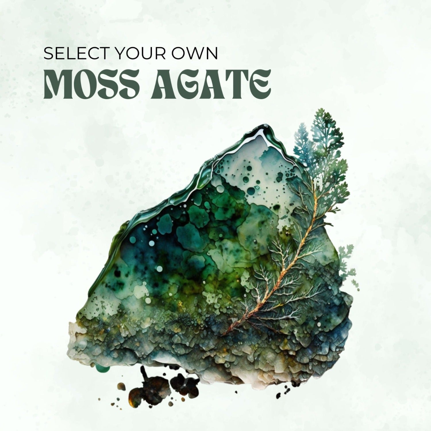 Introducing our Moss Agate Picking Service: You have the opportunity to hand-pick your desired pattern from our exquisite in-stock and made-to-order moss agate collection. This personalized approach ensures that the moss agate jewelry you choose perfectly aligns with your distinctive style.