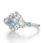 At its center shines a brilliant heart‑shaped sky blue topaz gemstone, glowing with the depth of the midnight ocean.