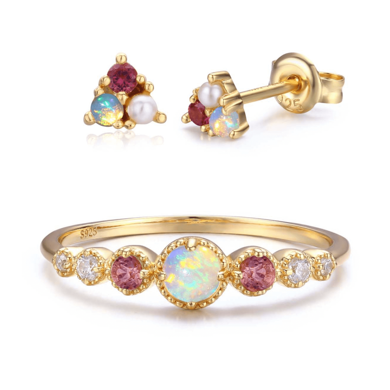 Opal Tourmaline Divinity Ring and Trio Earrings