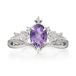 This amethyst ring symbolizes growth, renewal, and the delicate balance of nature, making it a meaningful non-traditional engagement ring or a treasured addition to your jewelry collection.